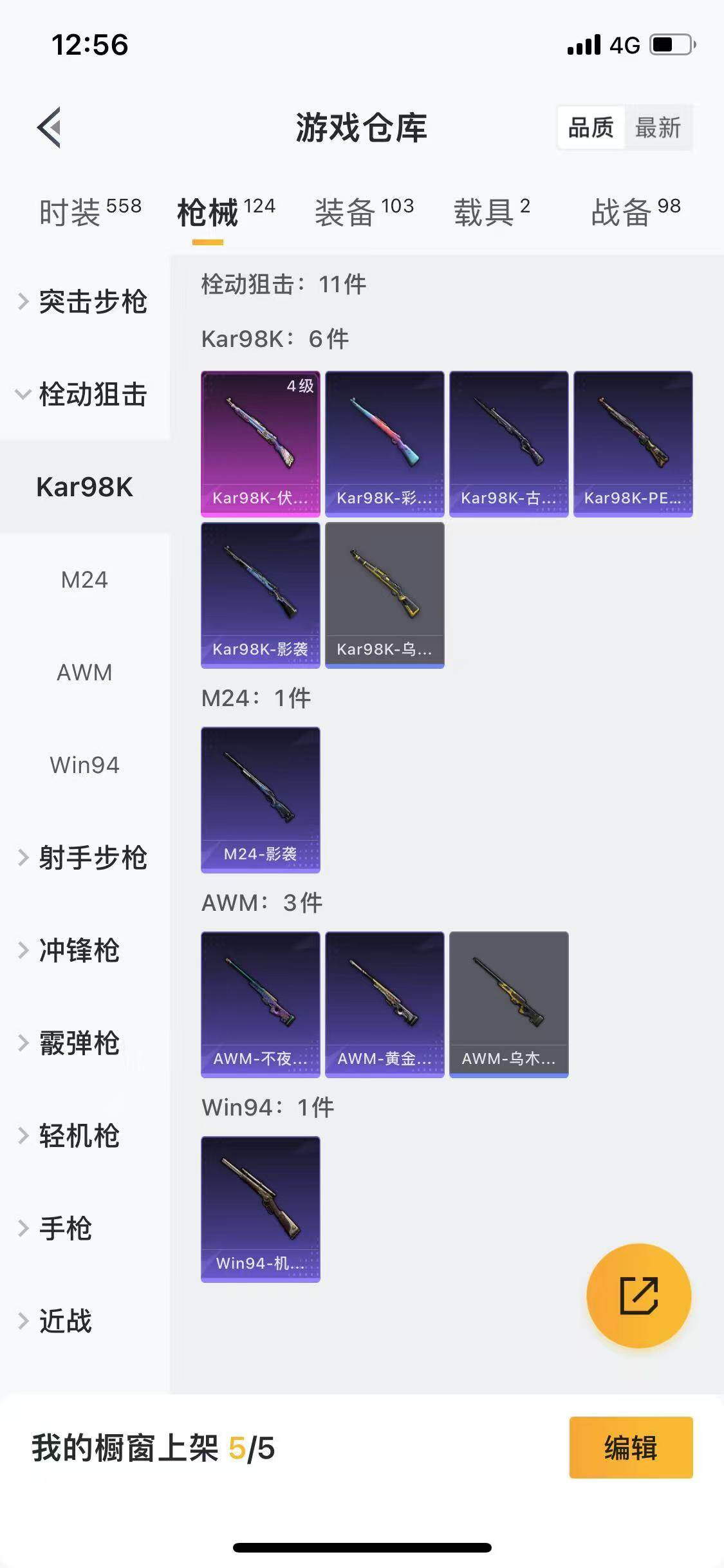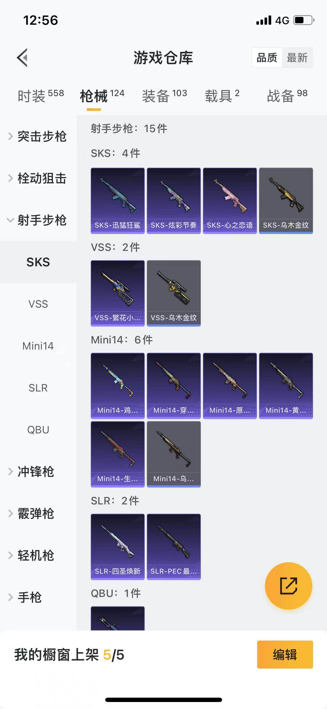 124套装/枪械6/装备103/载具2/战备98/王牌印记2/热