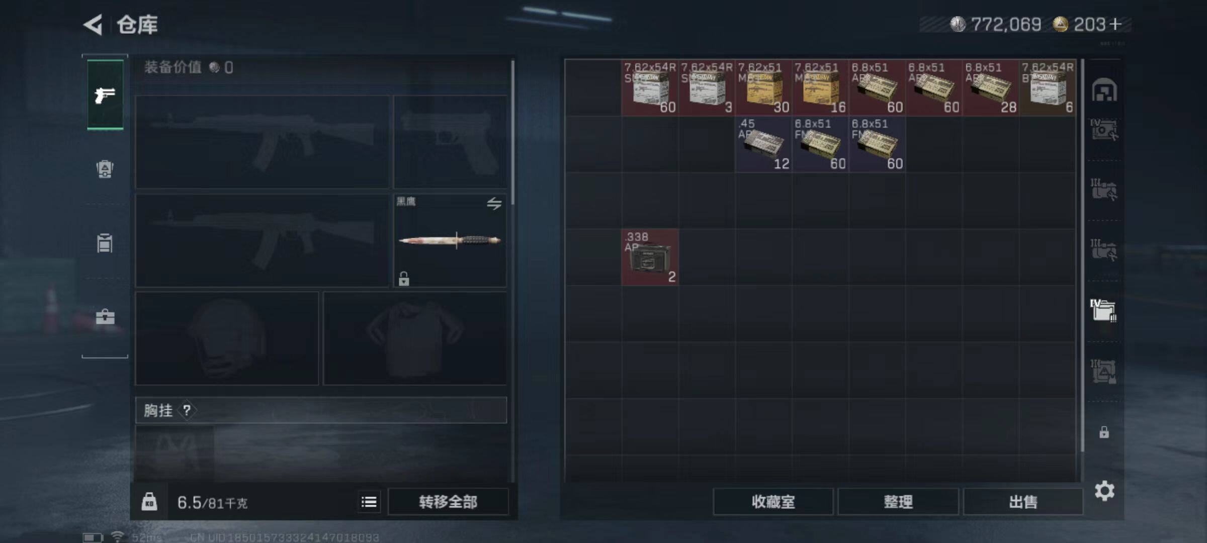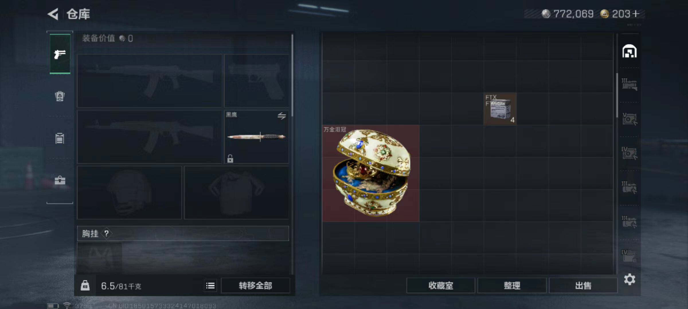 总资产(M):148M/哈夫币(K):772K/哈夫币(K):7