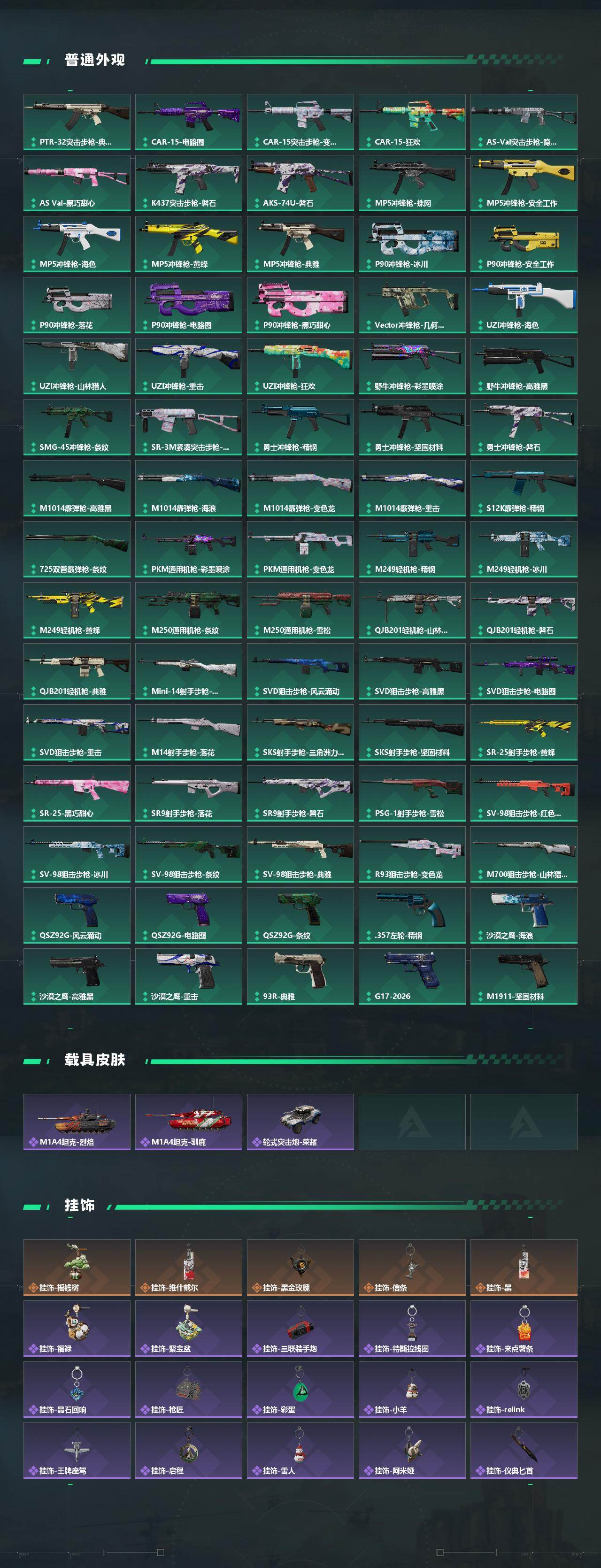 【近战皮肤】:近战-信条,近战-影锋,近战-处刑者2级,近战-黑鹰