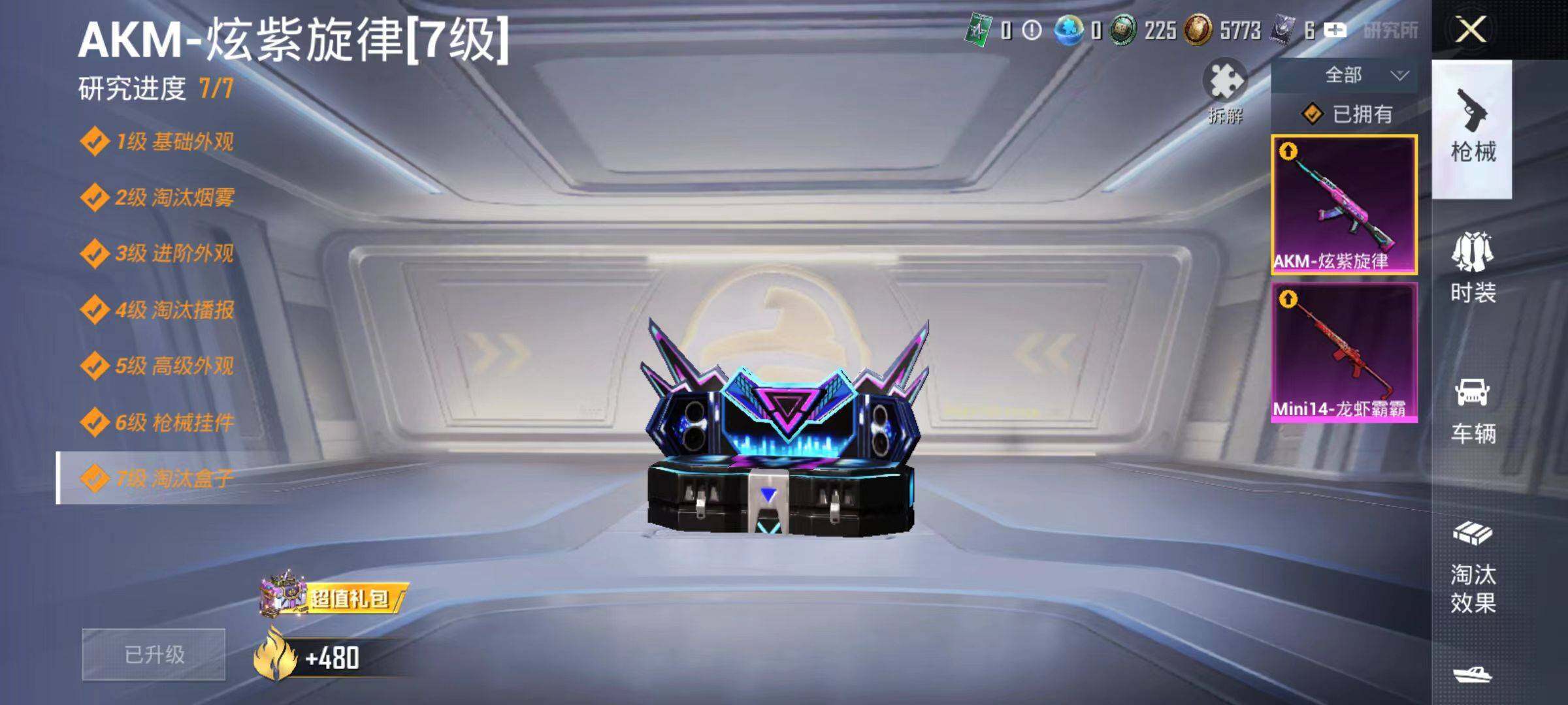 77套装/枪械2/装备122/载具4/战备53/王牌印记2/热力值45845/