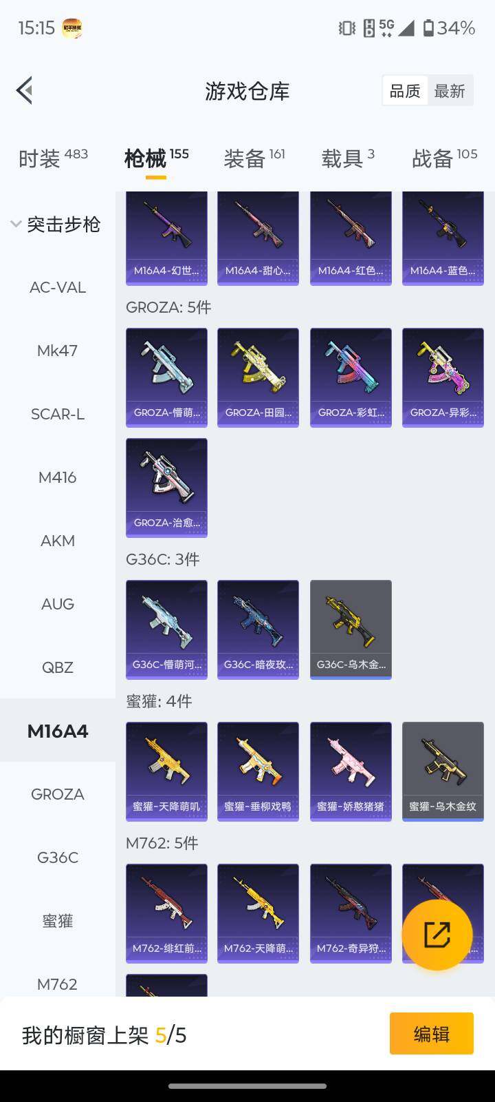 117套装/枪械2/装备161/载具3/战备105/王牌印记5/