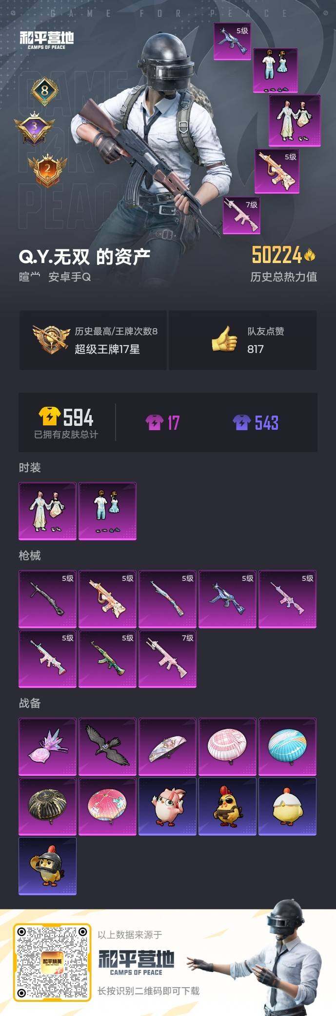 【HP3467】127套装/枪械8/装备189/战备111/王牌印记8/热力值50224/五级AKM-绿萝繁花/五级SCAR-L-锦绣绵绵/五级M416-电玩时刻/五级AUG-暖羊咩咩/五级UMP45-量子极限/五级Kar98K-巳巳如意/七级M417-第五大道/五级DP-28-豹影疾电/套装-龟仙人/粉装-仲夏莫吉托/粉装-莲影清波/AKM-绿萝繁花/SCAR-L-锦绣绵绵/M416-电玩时刻/AUG-暖羊咩咩/UMP45-量子极限/Kar98K-巳巳如意/M417-第五大道/DP-28-豹影
