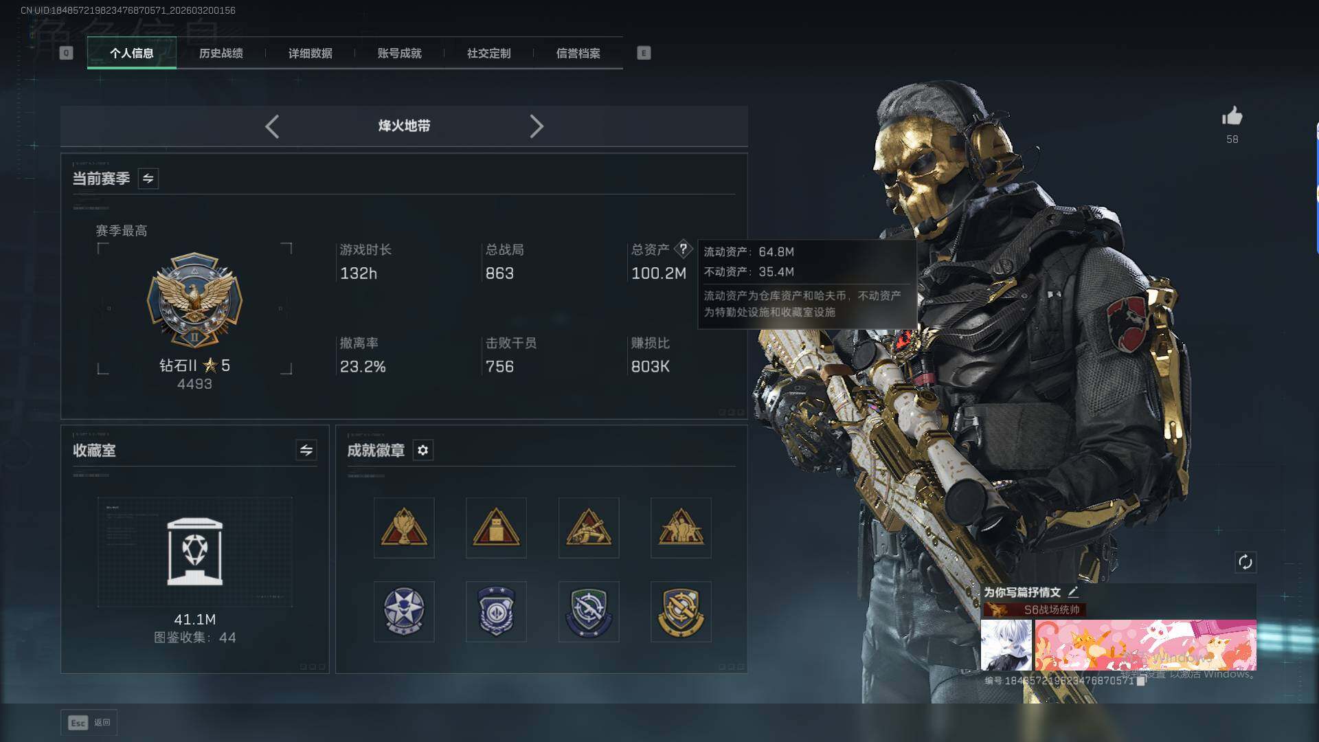 总资产(M):100M/哈夫币(K):365K/
