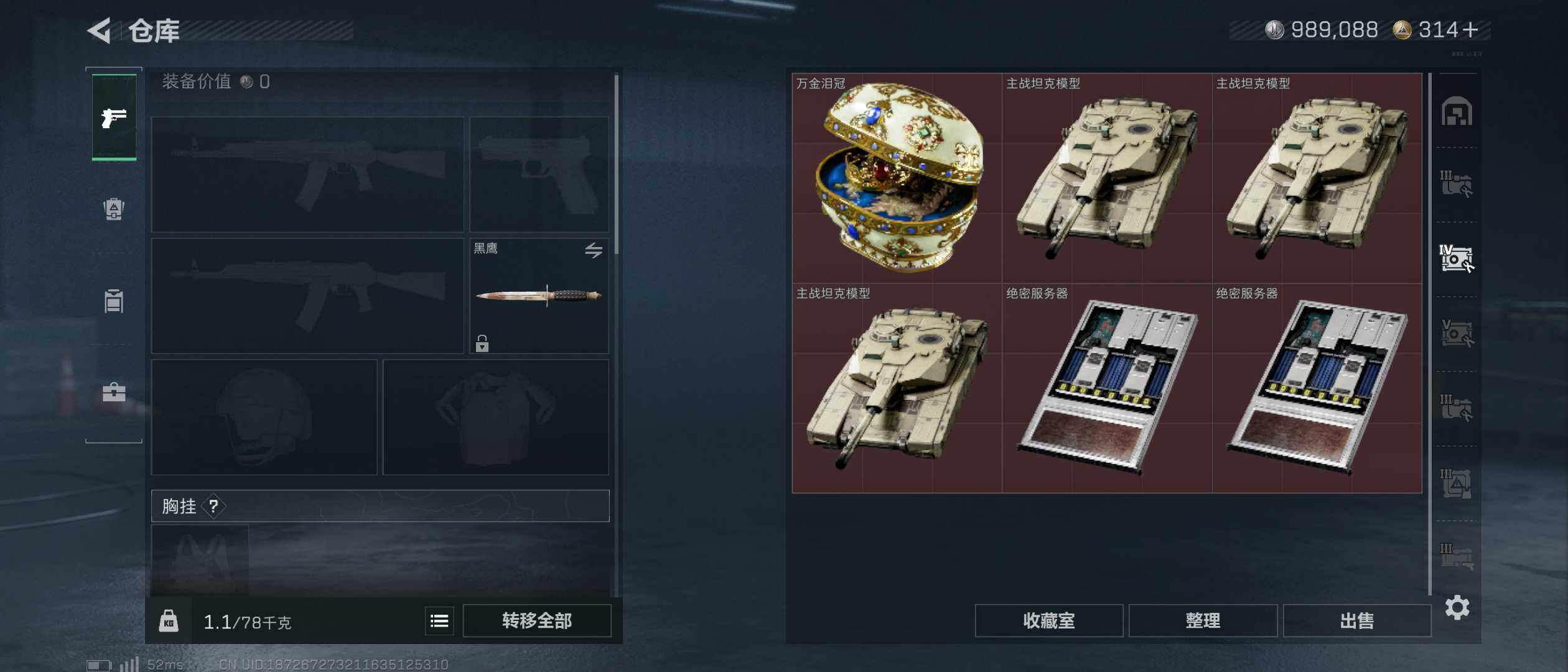 【SJZ90】总资产(M):283M/哈夫币(K):989K/哈夫币(K):989K/传说枪皮数:13/全面战场等级:10_段位:列兵/烽火地带等级:60_段位:钻石/蜂医-送葬人·无题密令/深蓝-不破誓约/红狼-电锯惊魂/近战-黑鹰/M4A1突击步枪-阿米娅/AK-12突击步枪-特斯拉线圈/SCAR-H战斗步枪-启航/腾龙突击步枪-捞点薯条/KC17突击步枪-电锯惊魂/UZI冲锋枪-特斯拉线圈/SR-3M紧凑突击步枪-特斯拉线圈/勇士冲锋枪-能天使-午夜邮差/725双管霰弹枪-送葬人-无题密令