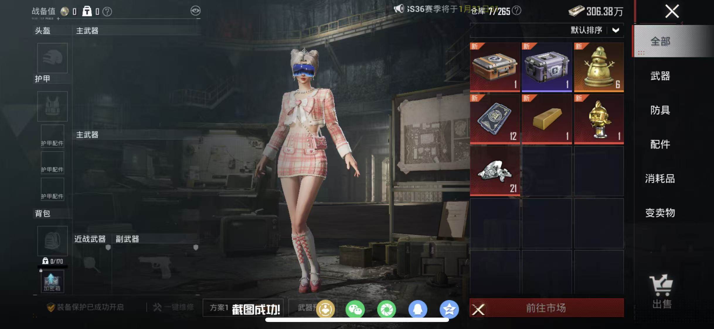 174套装/枪械4/装备262/载具3/战备152/王牌印记11