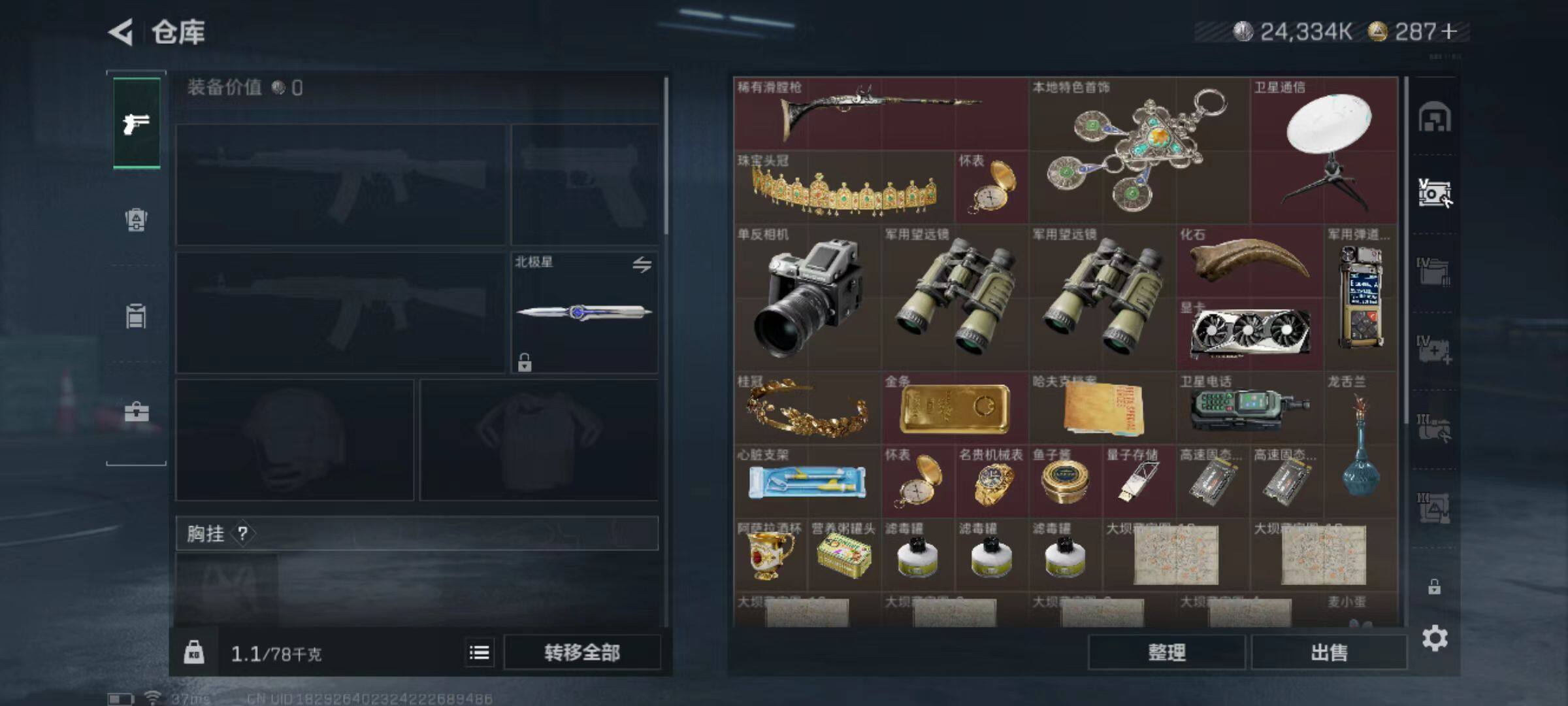 【SJZ61】总资产(M):93M/哈夫币(K):24334K/哈夫币(K):24334K/全面战场等级:8_段位:列兵/烽火地带等级:60_段位:黄金/红狼-蚀金玫瑰/威龙-飞虎/无名-夜鹰/近战-北极星/近战-黑鹰/AKM突击步枪-青纹/UZI冲锋枪-蛇纹涂装/M4A1突击步枪-蚀金玫瑰/AKM突击步枪-秘银工艺/AK-12突击步枪-夜鹰/SCAR-H战斗步枪-水墨云图/K437突击步枪-北极星/SMG-45冲锋枪-骑士/勇士冲锋枪-能天使-午夜邮差/QCQ171冲锋枪-北极星/725双管霰