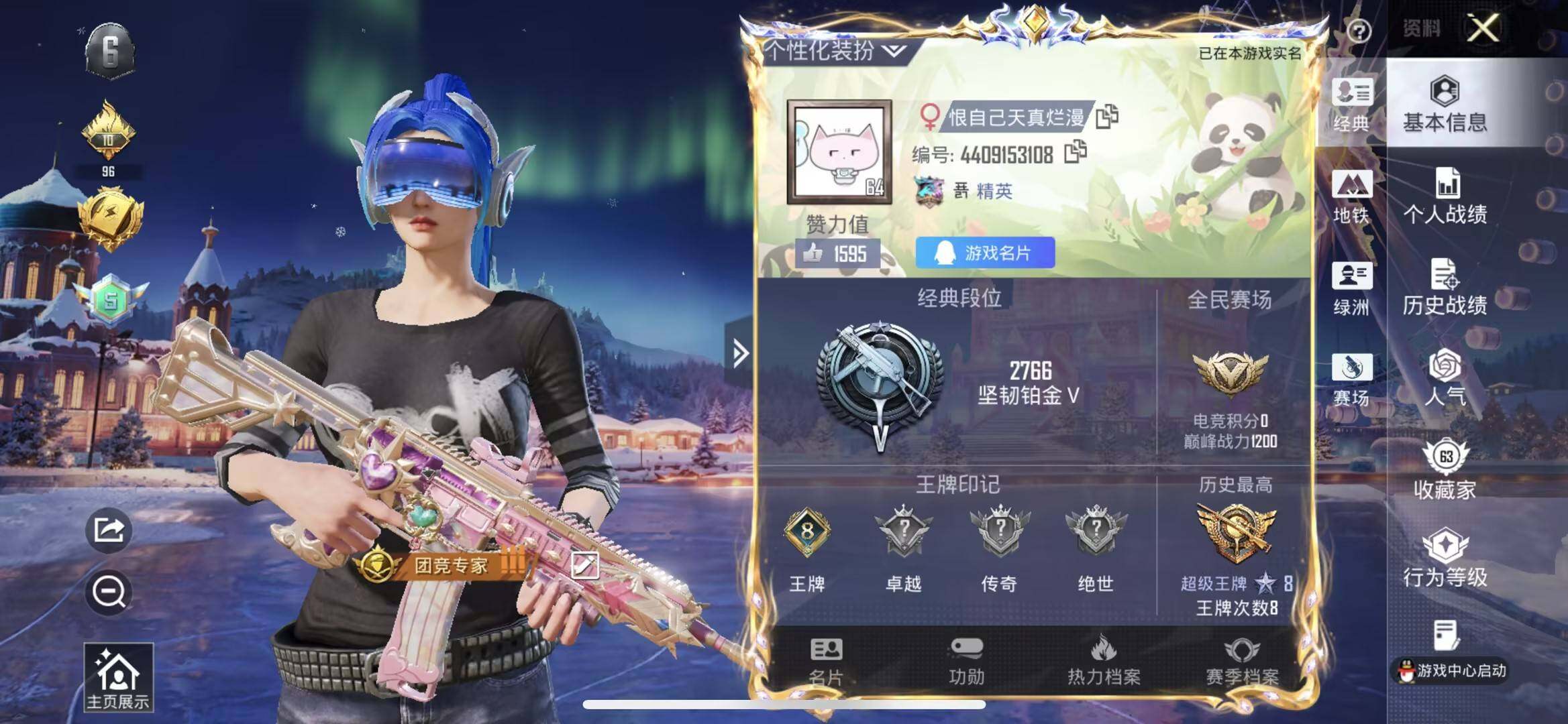 161套装/枪械4/装备275/战备160/王牌印记8/热力值69332/