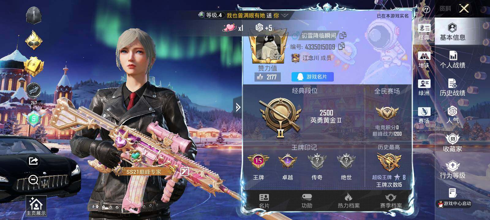 187套装/枪械3/装备307/载具1/战备150/王牌印记15/热力值75807/