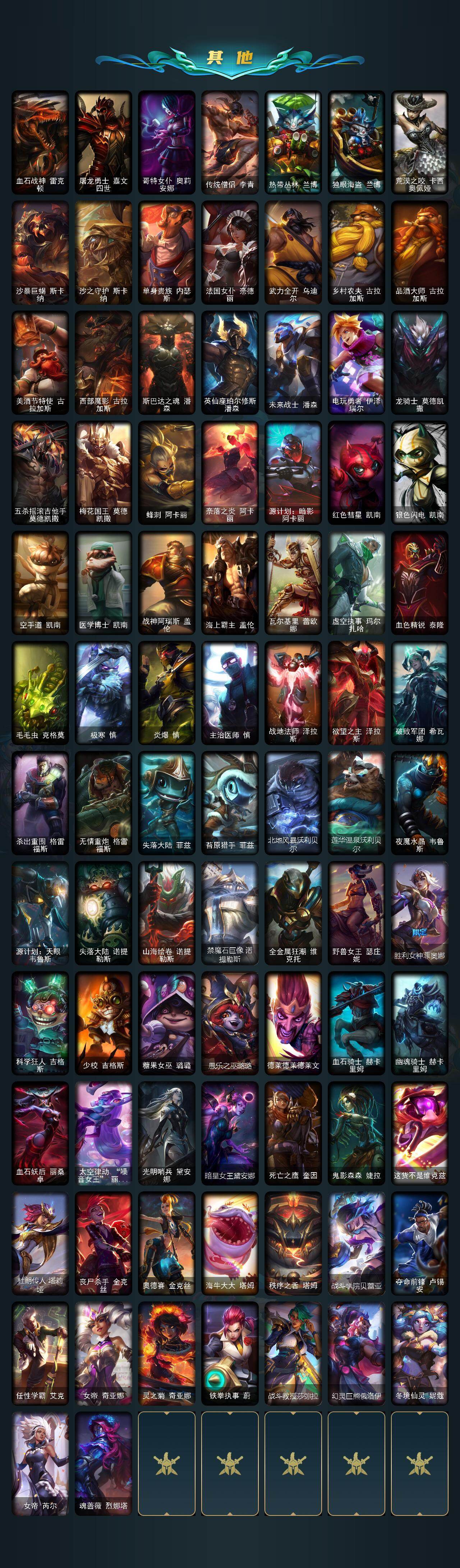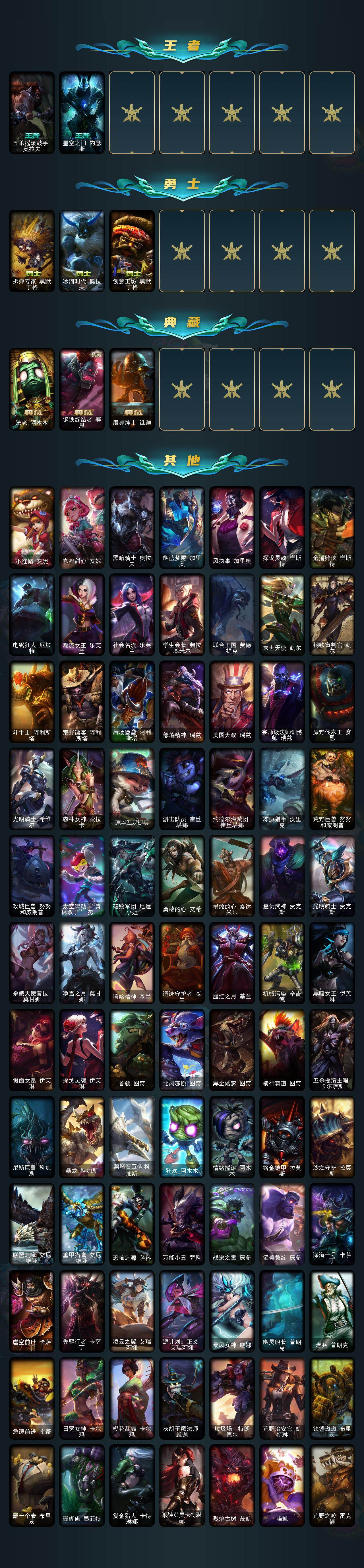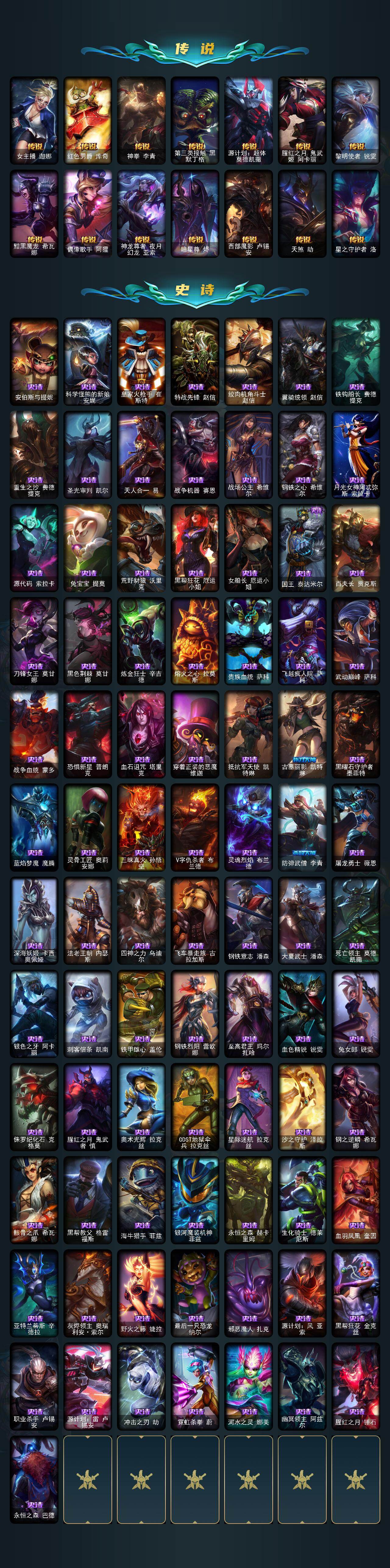 172英雄/358皮肤/1终极/9神话/63限定/9臻彩/