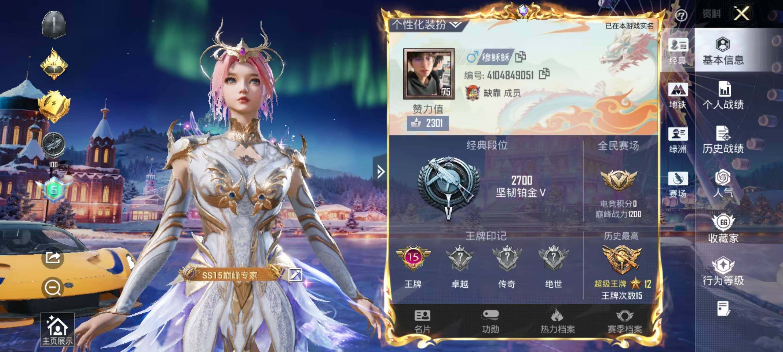 193套装/枪械2/装备288/载具2/战备178/王牌印记15/热力值76016/