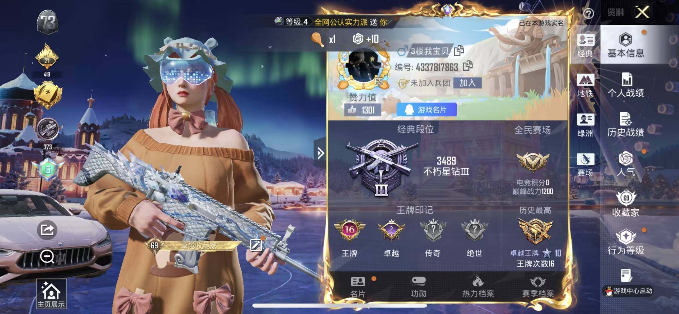 202套装/枪械2/装备310/载具1/战备191/王牌印记16/热力值81591/