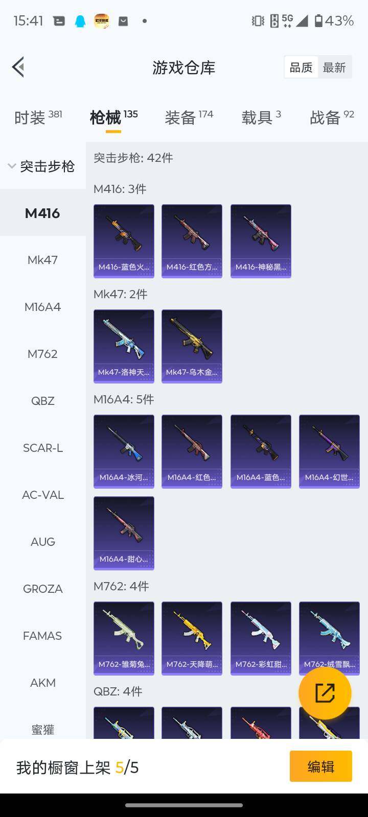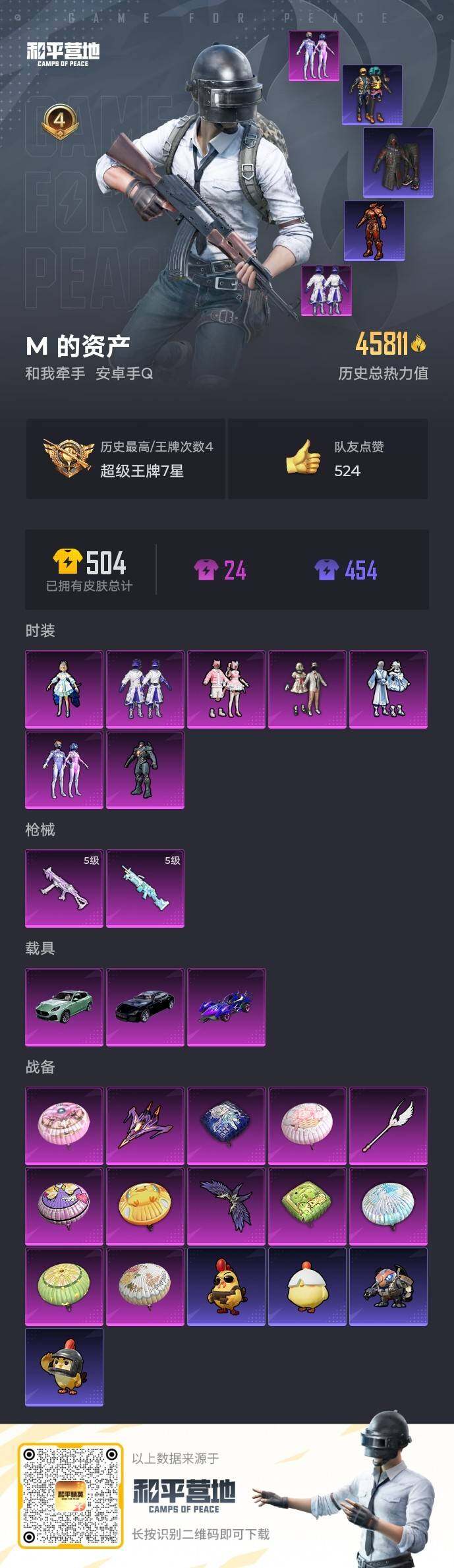 100套装/枪械2/装备174/载具3/战备92/王牌印记4/热力值45811/