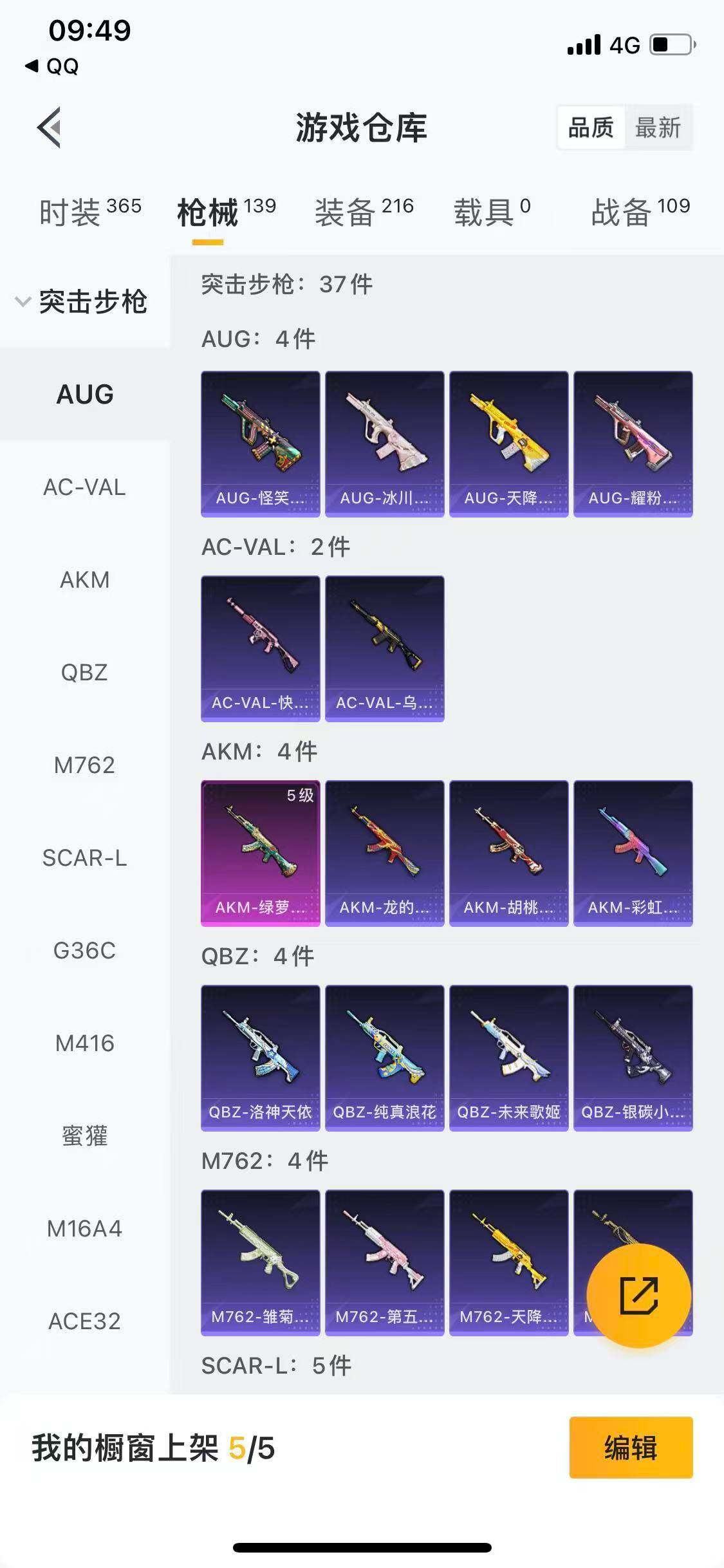 106套装/枪械7/装备216/战备109/王牌印记10/热力值