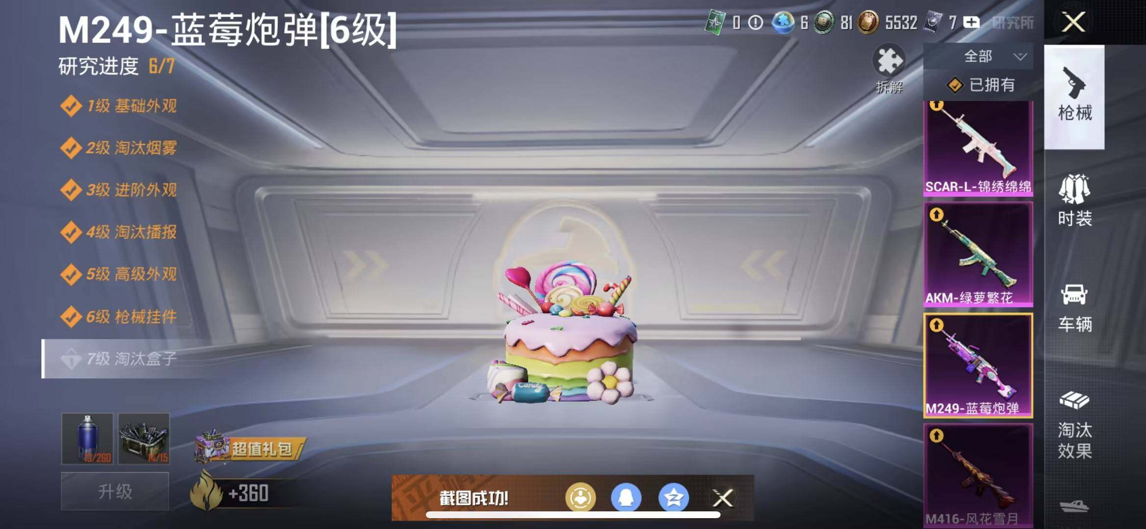 【HP3230】116套装/枪械9/装备224/载具1/战备144/王牌印记8/热力值62120/五级AKM-绿萝繁花/五级SCAR-L-锦绣绵绵/七级M416-风花雪月/五级GROZA-镜光银凌/五级AUG-暖羊咩咩/五级Kar98K-巳巳如意/五级AMR-智耀战神/六级M249-蓝莓炮弹/三级DP-28-豹影疾电/粉装-蝶舞蔷薇/粉装-骨龙祭渊/粉装-海渊国主/粉装-幻彩电音/鬼马风驰/AKM-绿萝繁花/SCAR-L-锦绣绵绵/M416-风花雪月/GROZA-镜光银凌/AUG-暖羊咩咩/Ka