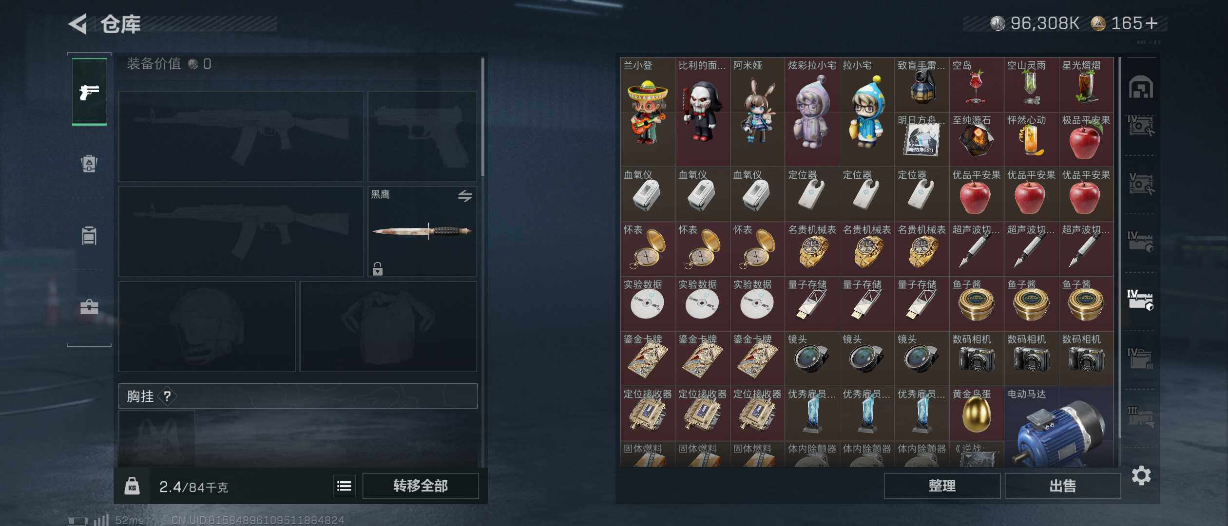 【SJZ137】总资产(M):378M/哈夫币(K):96308K/哈夫币(K):96308K/传说枪皮数:8/全面战场等级:1_段位:无段位/烽火地带等级:60_段位:青铜/骇爪-维什戴尔/红狼-电锯惊魂/露娜-金牌射手/近战-黑鹰/ASh-12战斗步枪-鹅鸭杀/M7战斗步枪-零度协议/SG552突击步枪-运动员/SCAR-H战斗步枪-启航/KC17突击步枪-电锯惊魂/QCQ171冲锋枪-鹅鸭杀/QJB201轻机枪-鹅鸭杀/R93狙击步枪-维什戴尔/QBZ95-1突击步枪-曙光/AUG突击步枪