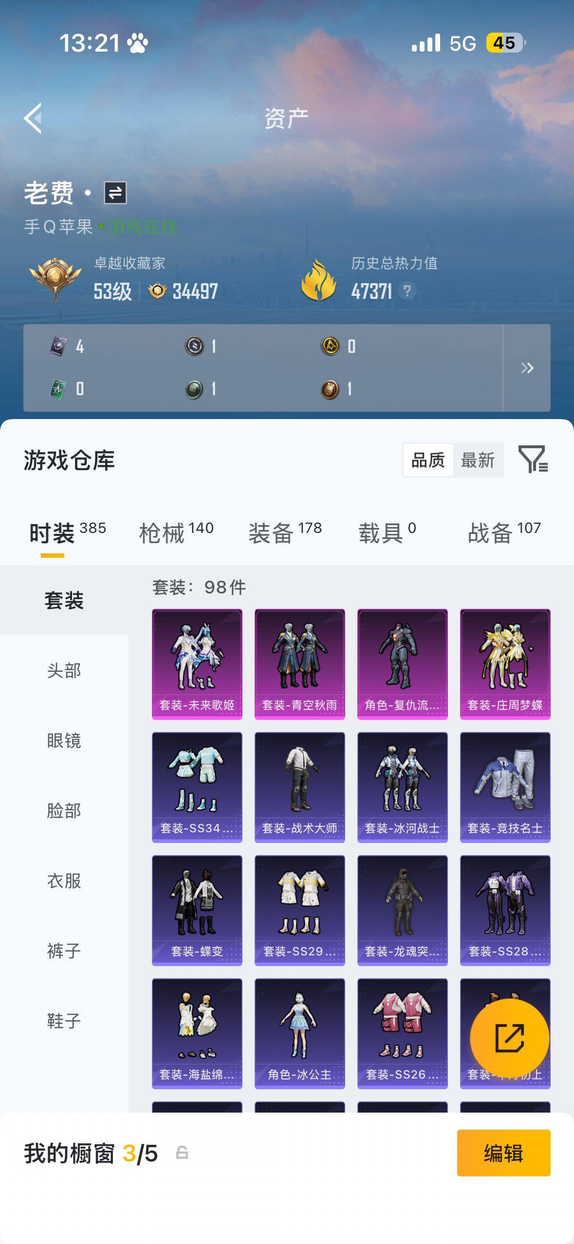 98套装/枪械6/装备178/战备107/王牌印记7/热力值47371/