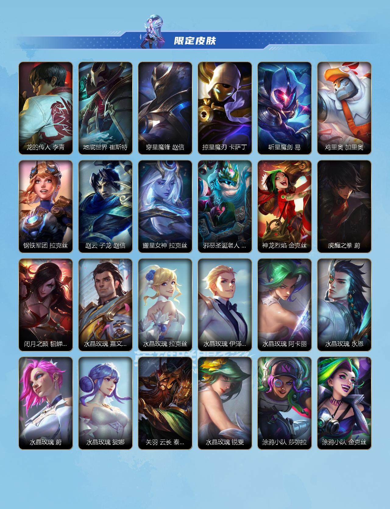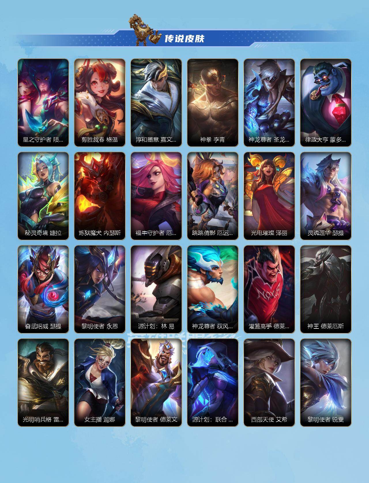129英雄/650皮肤/2典藏/33神话/86传说/