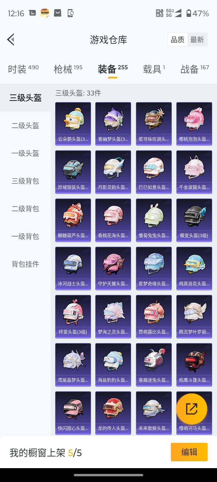 142套装/枪械6/装备255/载具1/战备167/王牌印记12/热力值60825/