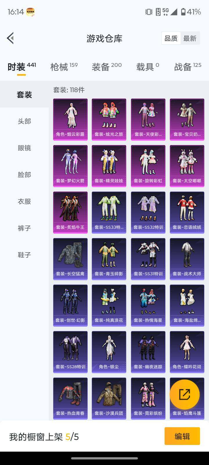 118套装/枪械5/装备200/战备125/王牌印记11/热力值55760/