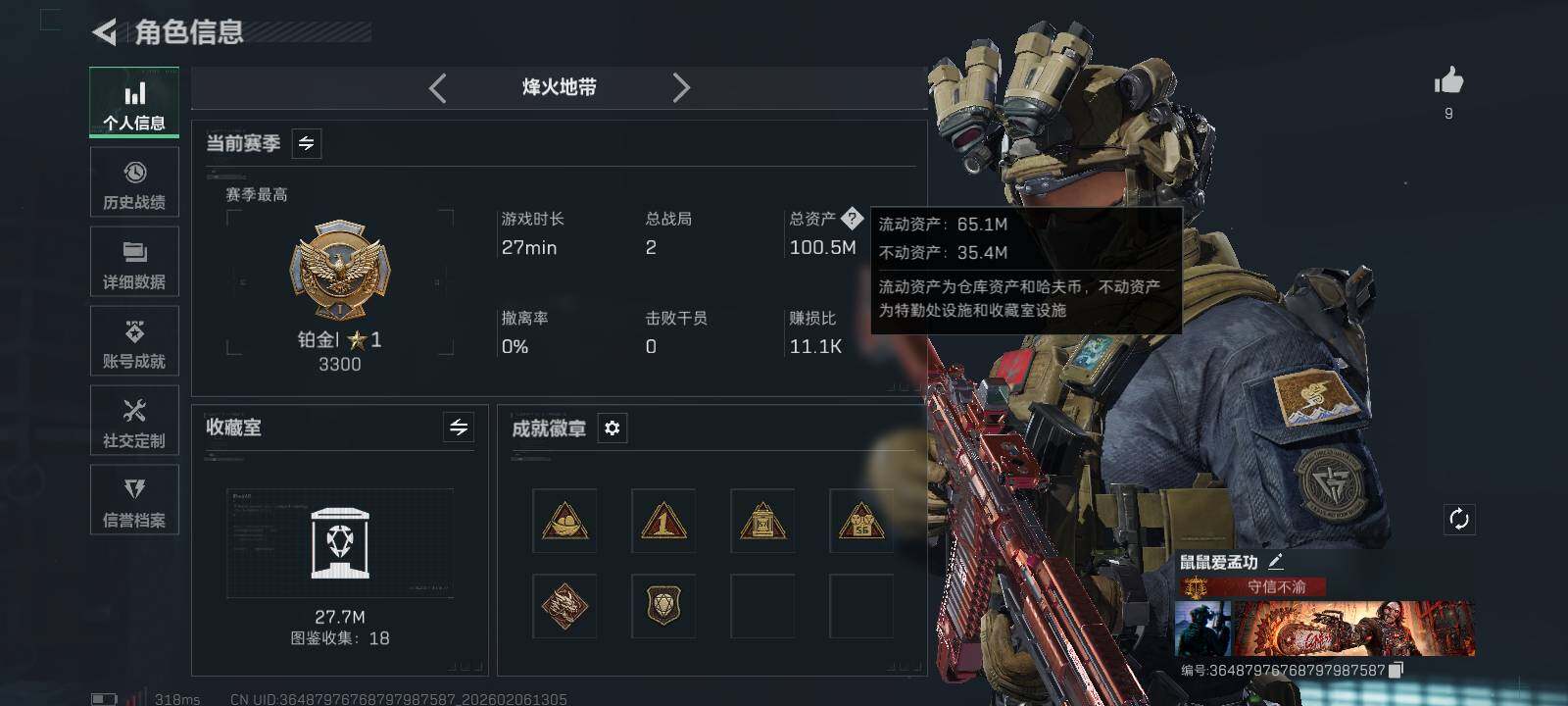【SJZ211】总资产(M):100M/哈夫币(K):44K/哈夫币(K):44K/传说枪皮数:24/全面战场等级:22_段位:上等兵/烽火地带等级:60_段位:铂金/红狼-蚀金玫瑰/蜂医-送葬人·无题密令/红狼-电锯惊魂/露娜-金牌射手/近战-信条/近战-影锋/近战-怜悯/近战-电锯惊魂/近战-黑鹰/M4A1突击步枪-蚀金玫瑰/M4A1突击步枪-阿米娅/ASh-12战斗步枪-鹅鸭杀/SG552突击步枪-运动员/AK-12突击步枪-特斯拉线圈/SCAR-H战斗步枪-启航/G3战斗步枪-骑士/CA