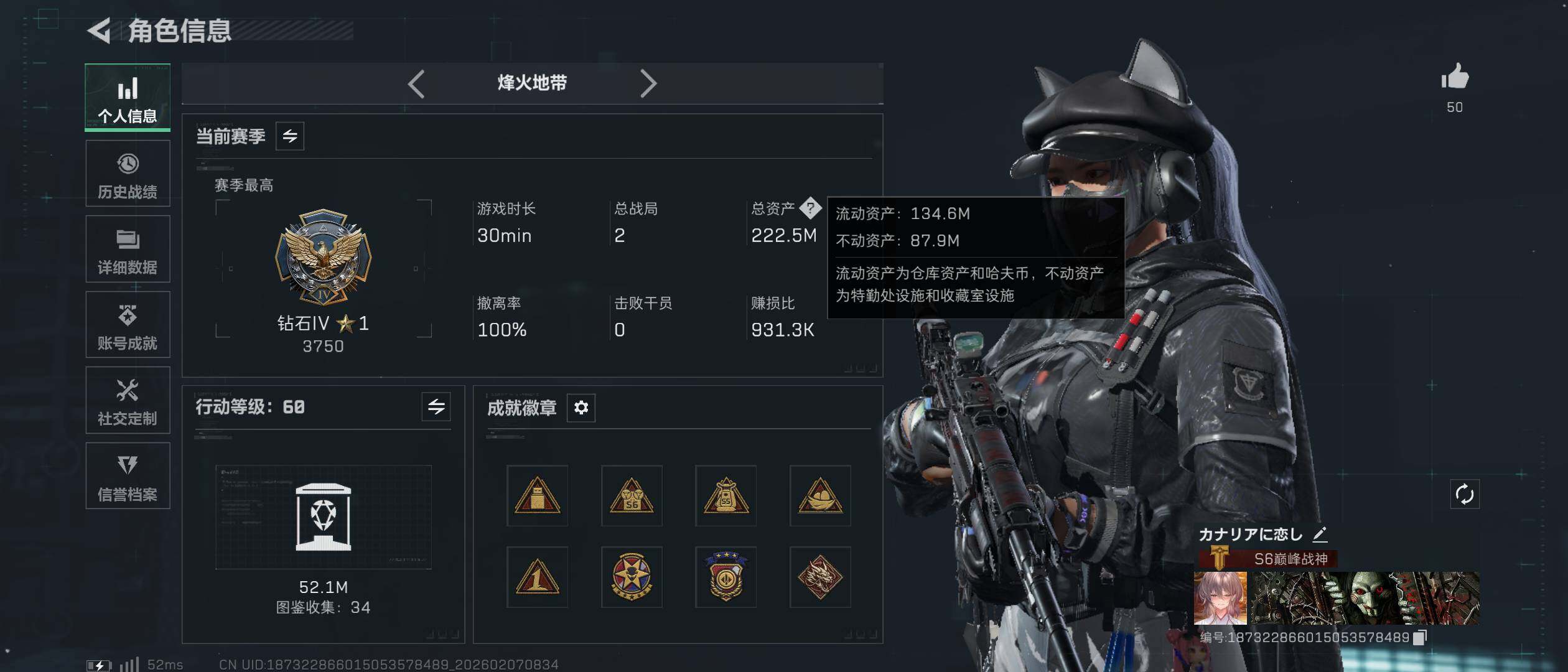 总资产(M):222M/哈夫币(K):921K