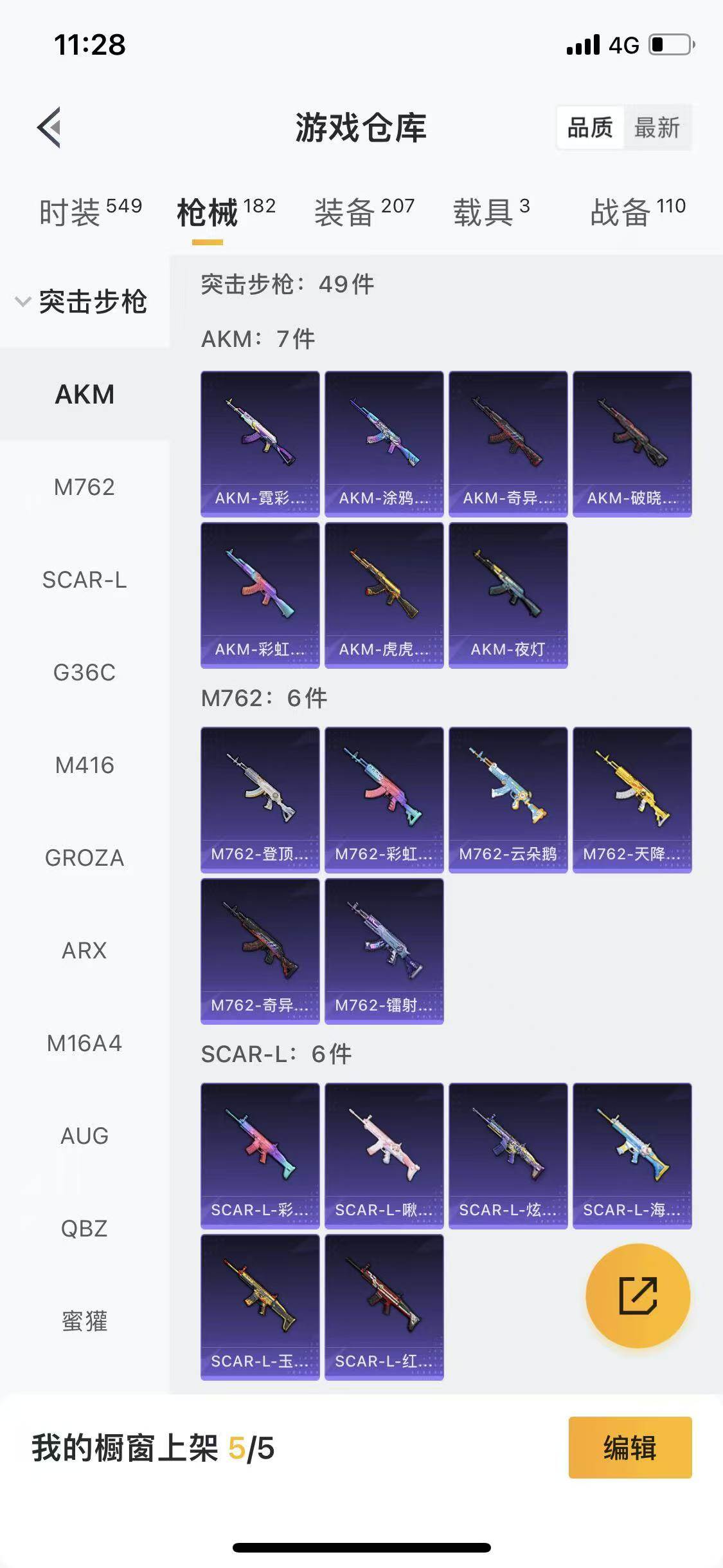 141套装/枪械5/装备207/载具3/战备110/王牌印记9/