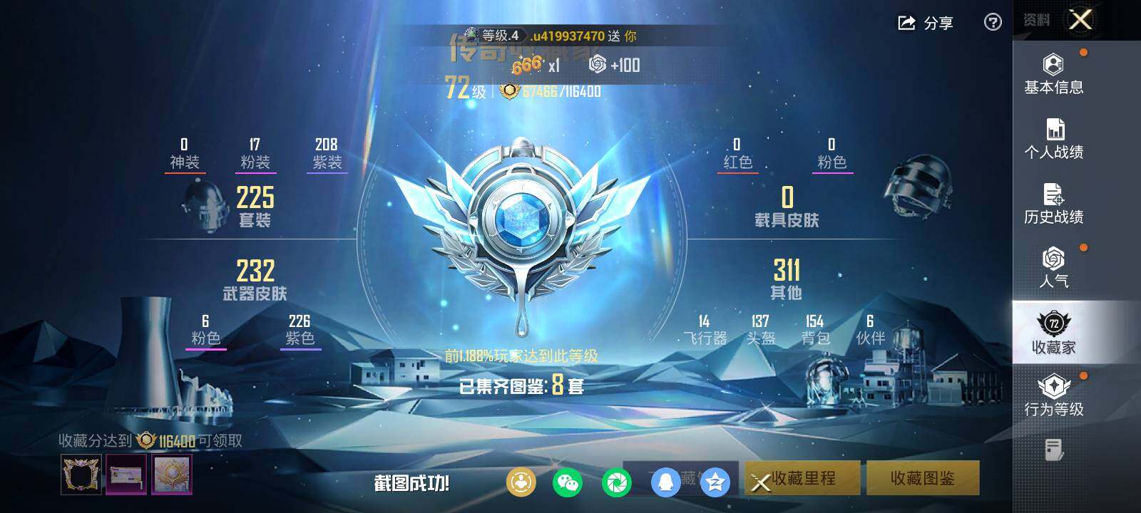 225套装/枪械6/装备339/战备199/王牌印记13/热力值90786/