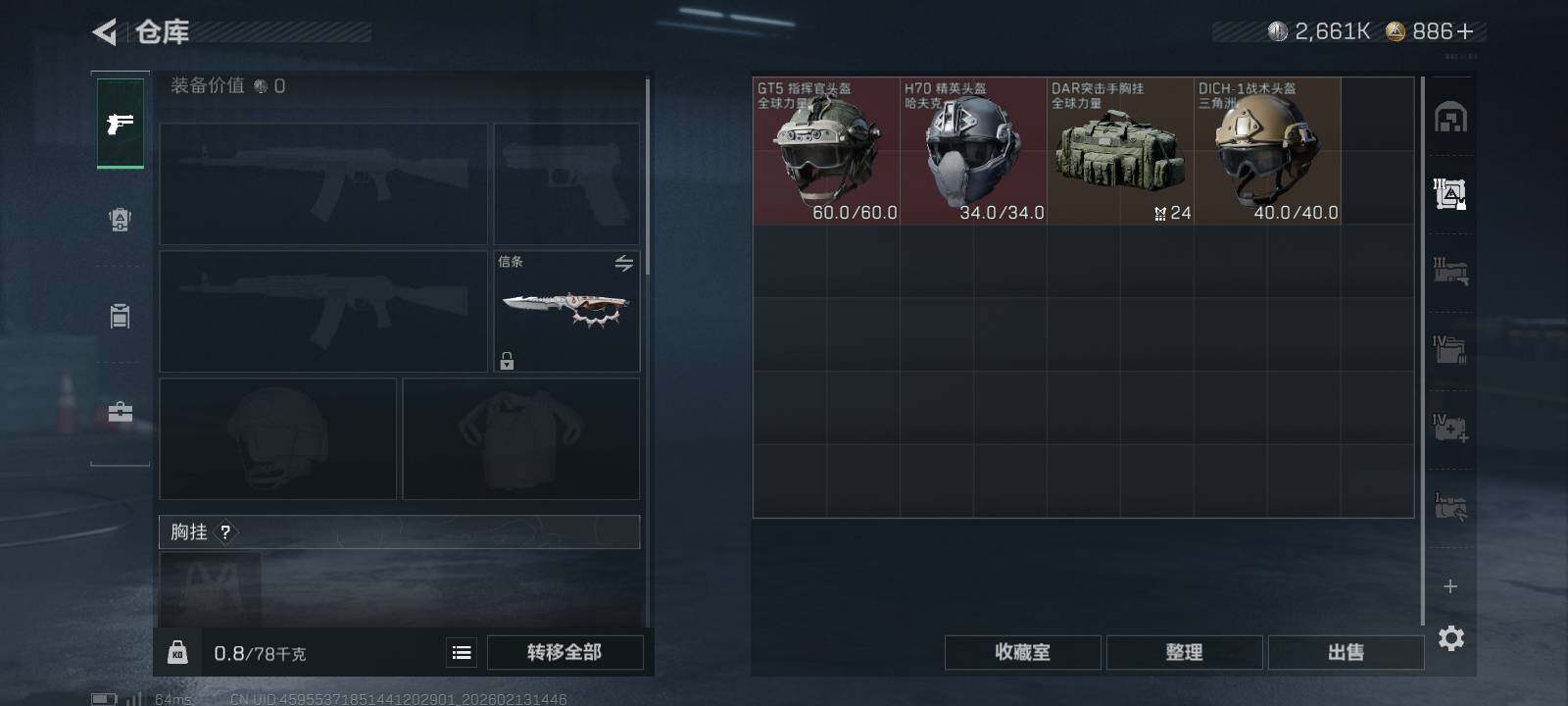 总资产(M):155M/哈夫币(K):2661K/