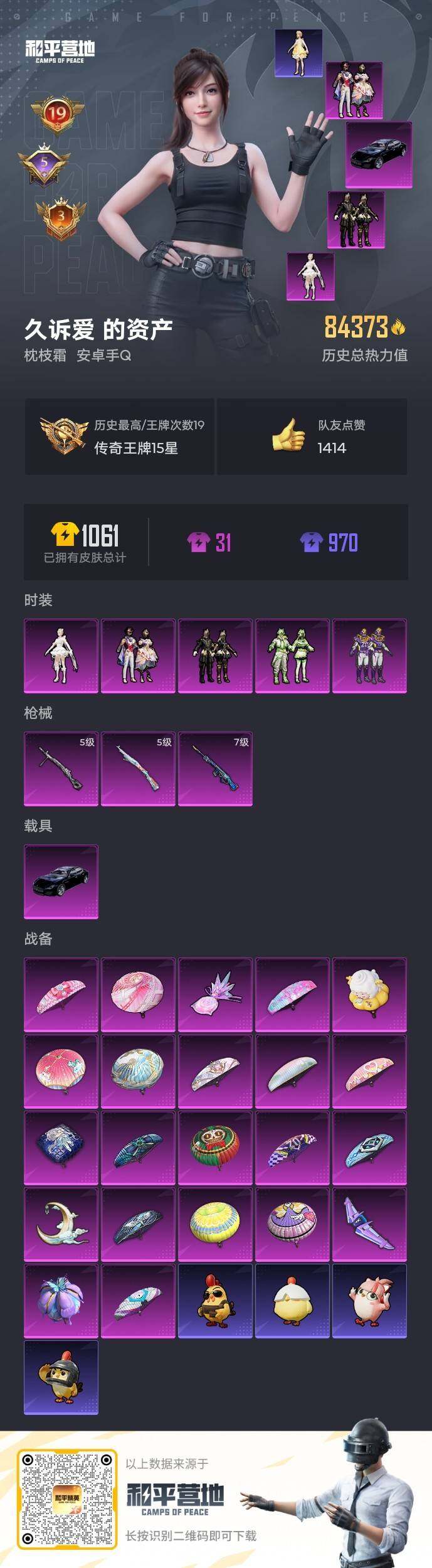 【HP3813】192套装/枪械3/装备370/载具1/战备220/王牌印记19/热力值84373/五级Kar98K-巳巳如意/七级SLR-暗夜玫瑰/五级DP-28-豹影疾电/套装-龟仙人/套装-浪漫波比/套装-粉红小猪/粉装-王牌四分卫/粉装-碧影闪光/粉装-暗夜鎏金/角色-千金淑猫/粉装-星穹咏叹调/玛莎拉蒂Quattroporte(夜幕蓝)/Kar98K-巳巳如意/SLR-暗夜玫瑰/DP-28-豹影疾电/炫彩糖果飞行器/梦幻火箭飞行器/绮梦青鸾飞行器/绝对恒星降落伞/梦幻火箭降落伞/四圣焕
