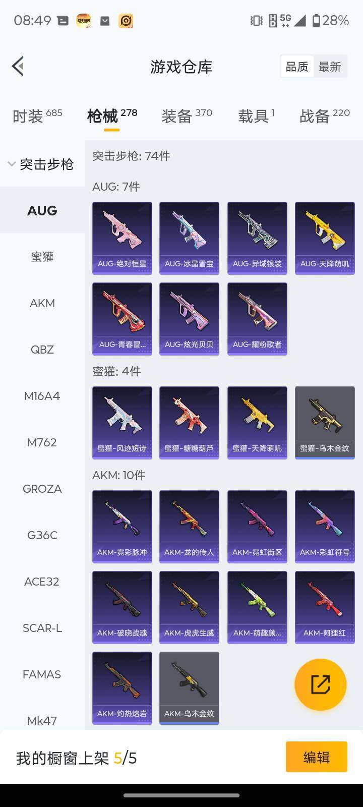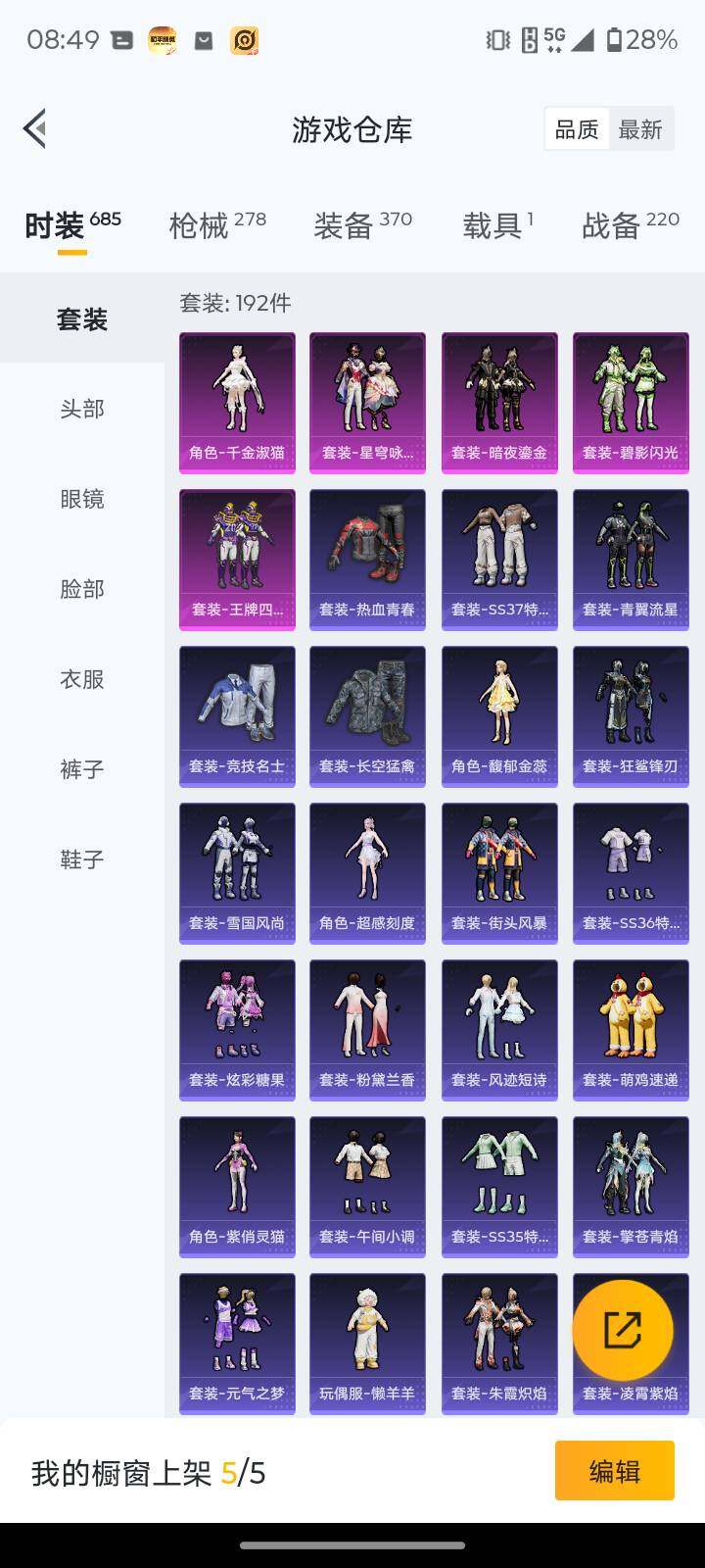 192套装/枪械3/装备370/载具1/战备220/王牌印记19