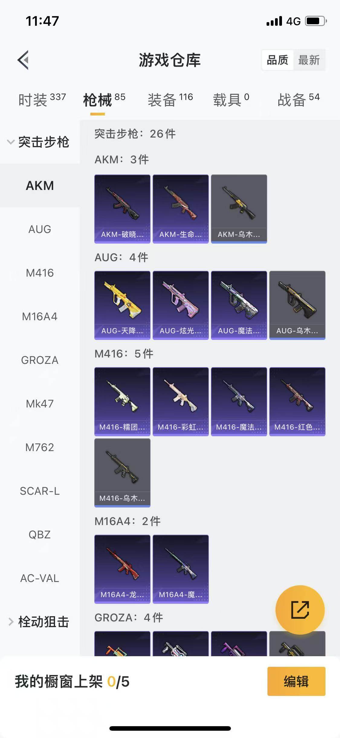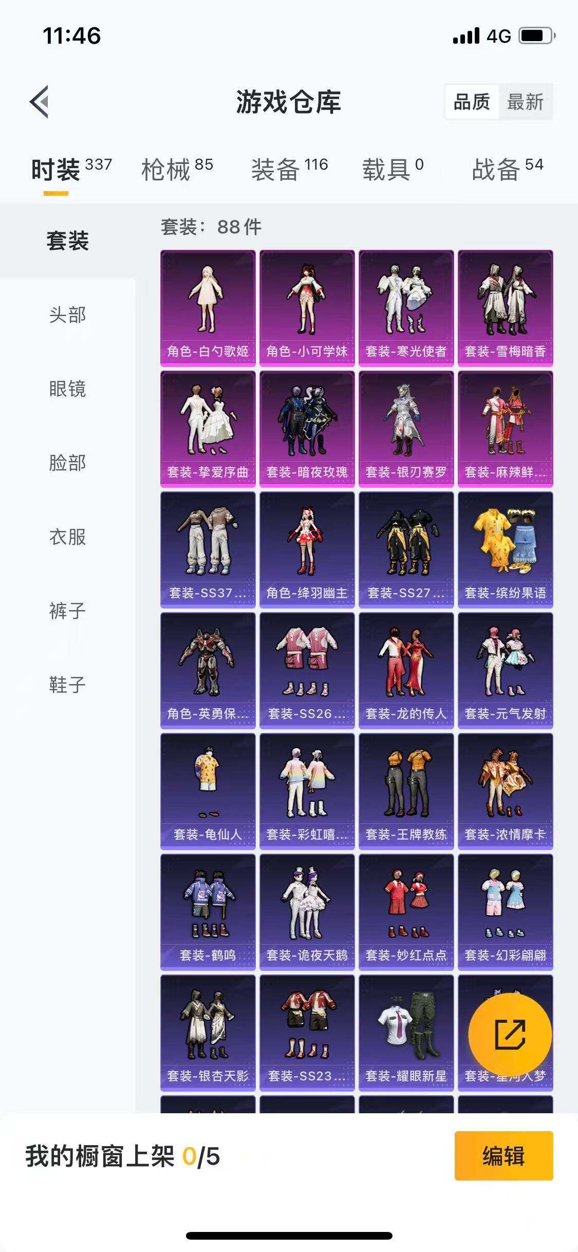 88套装/枪械1/装备116/战备54/王牌印记3/热力值28439/