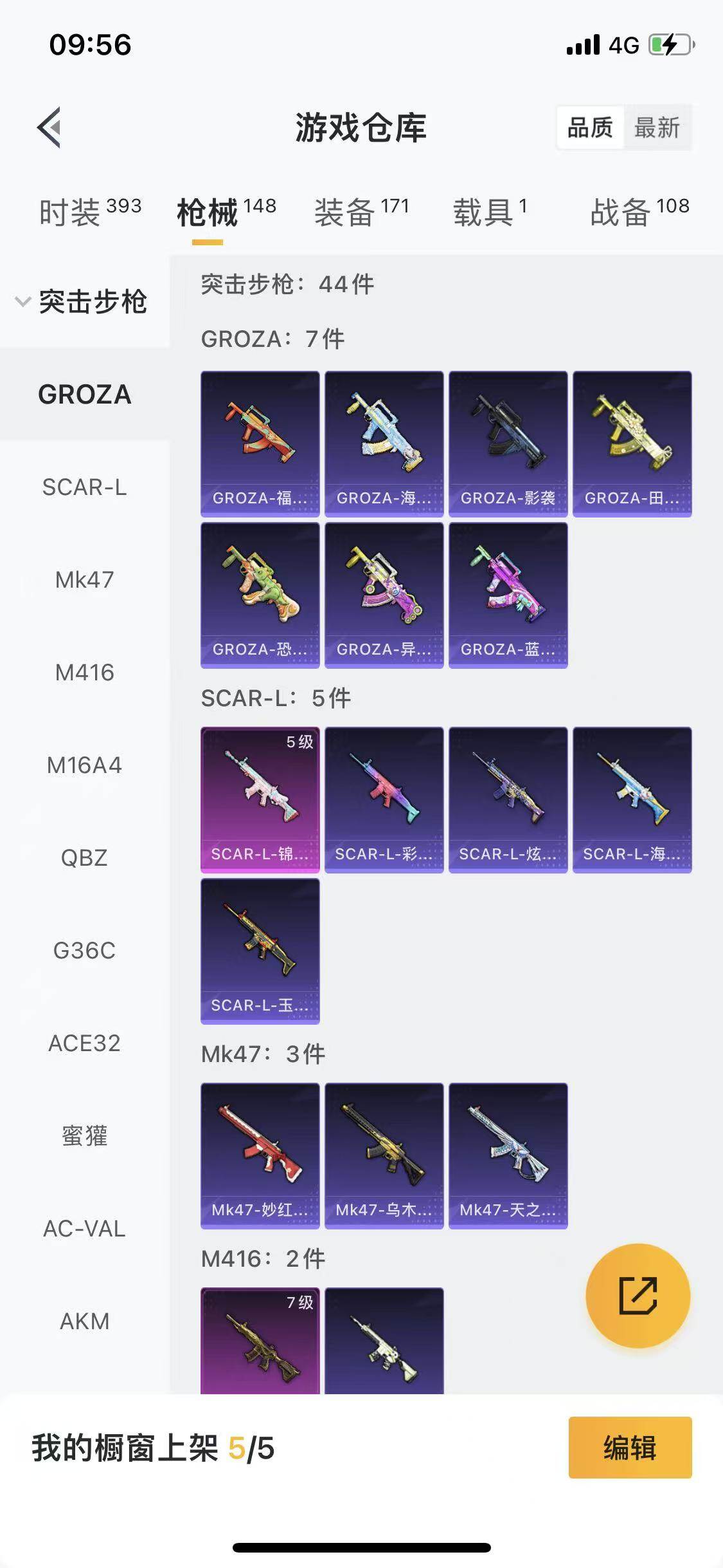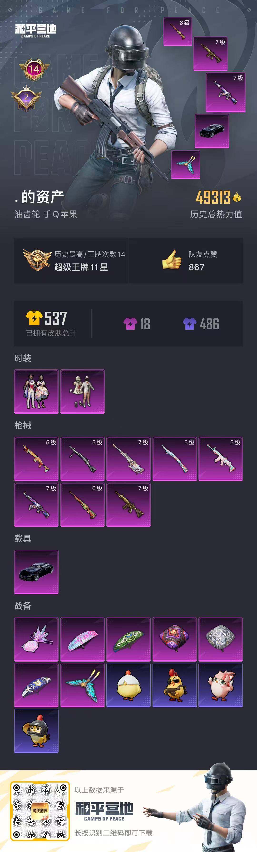 109套装/枪械8/装备171/载具1/战备108/王牌印记14/热力值49313/