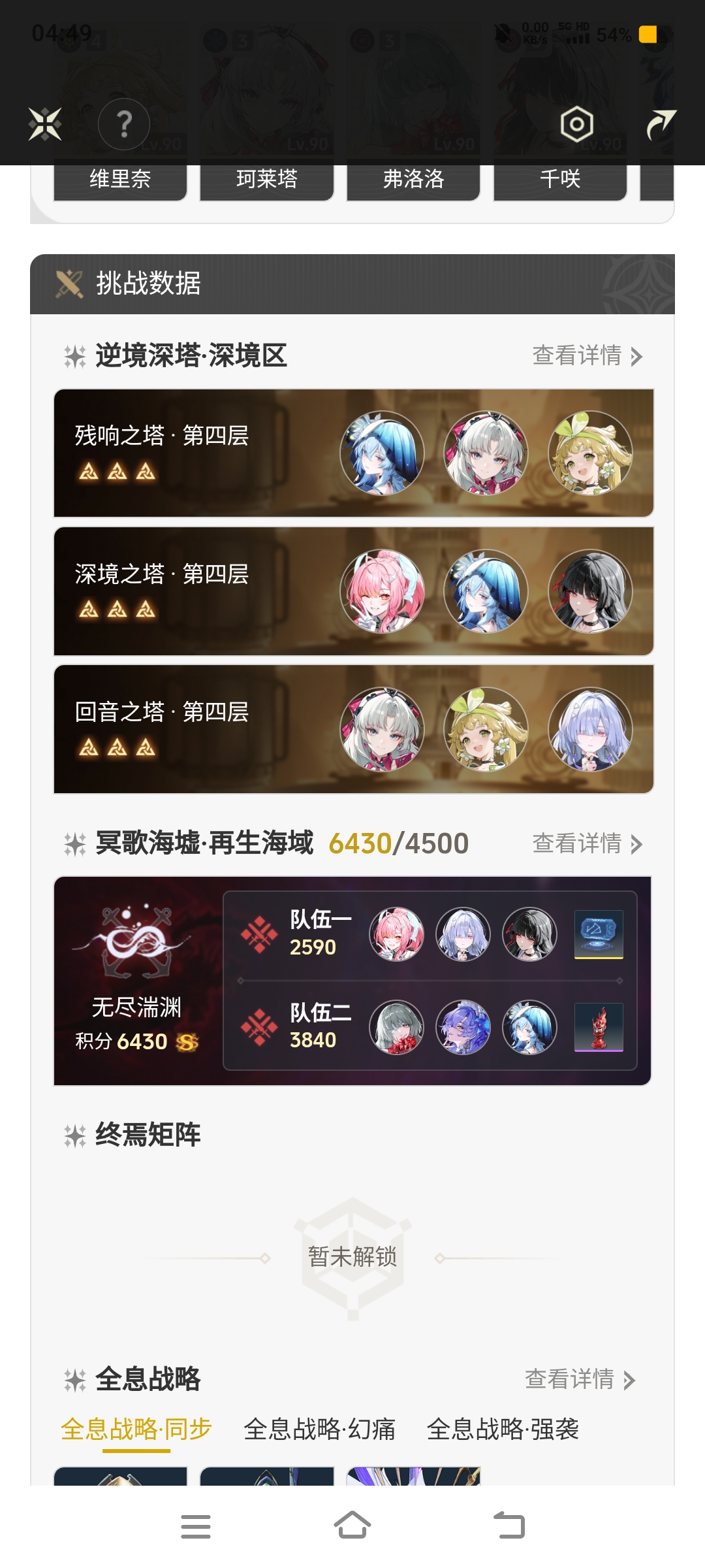 弗,珂,千都是3+1,岸岸2+0,打满海虚,深塔无难度,全息只有最新出的没打,其他全部打满