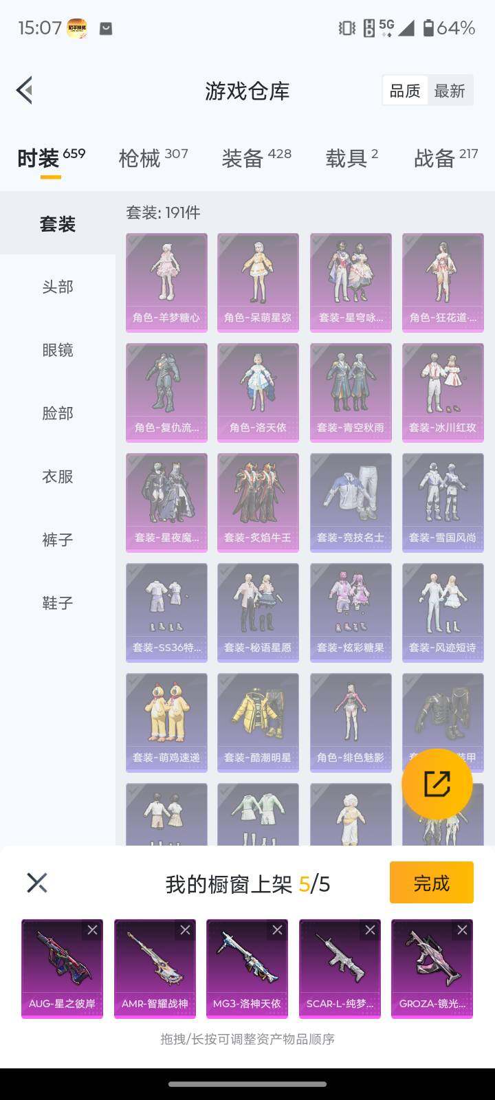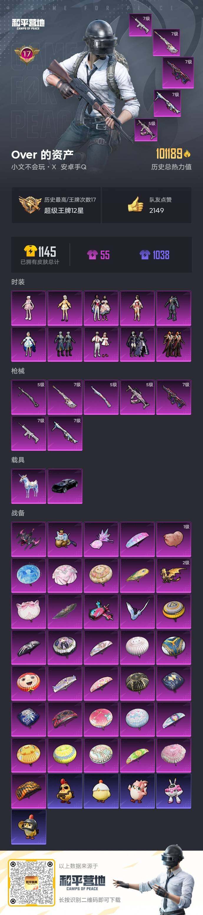 191套装/枪械7/装备428/载具2/战备217/王牌印记17/热力值101189/