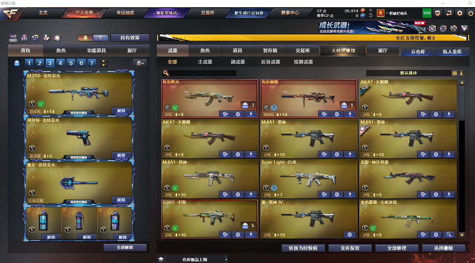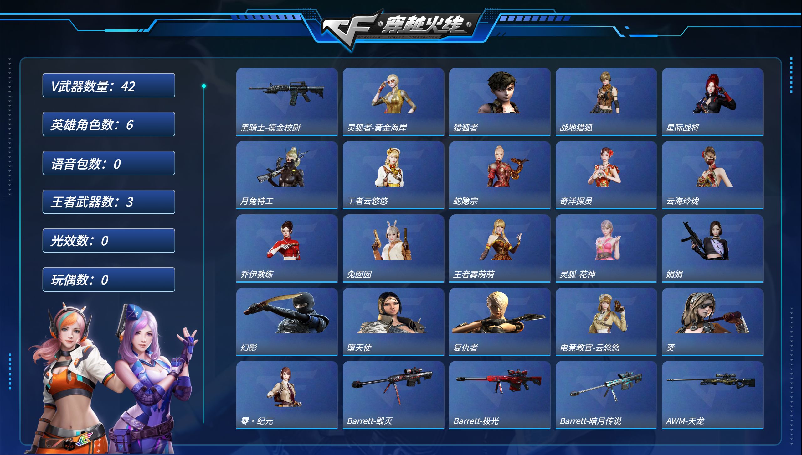 MCF896【42V 传说辉光 传说幽瞳 竞技荣光套】无二次包 【等级】100【区服】四川一区【英雄武器】42【传说级武器】传说辉光 传说幽瞳【王者级武器】高爆手雷-雷暴王者 高爆手雷-雷暴王者 高爆手雷-雷暴王者【英雄级角色】葵 电竞教官-云悠悠 月兔特工 星际战将 战地猎狐【英雄级武器】M4A1-苍鸣雷神 Barrett-碧霄极光 USP-冥王 机械迷城-穹宇 G36C-幻影 屠龙 屠龙 AWM-裁决 Kar98K-星神 AA-12-雷霆 AA-12-雷霆 QBZ191-银翼游侠 Barre