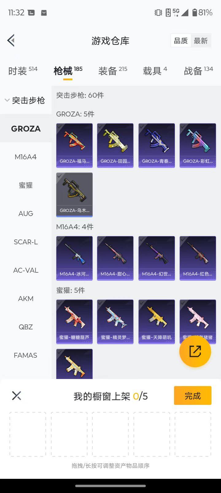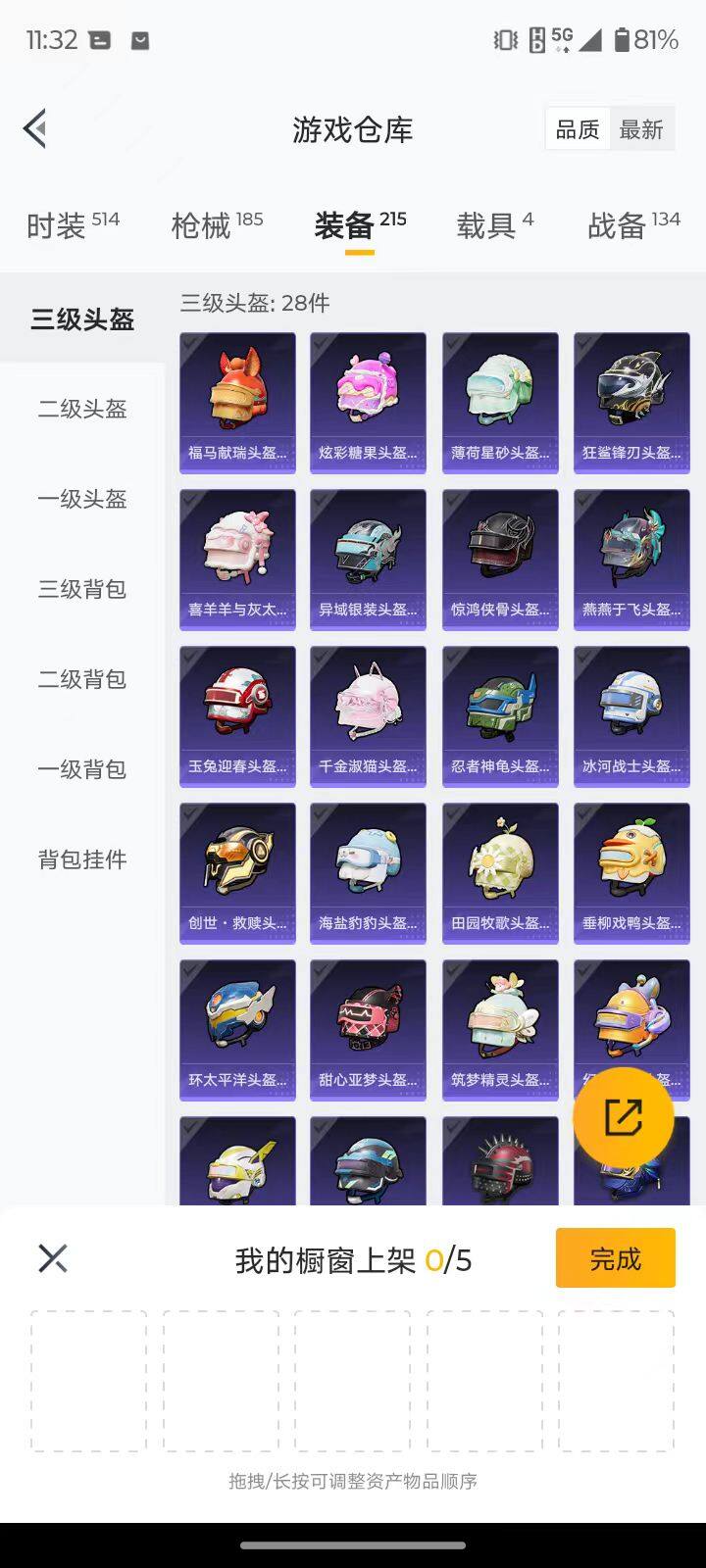 136套装/枪械3/装备215/载具4/战备134/王牌印记14