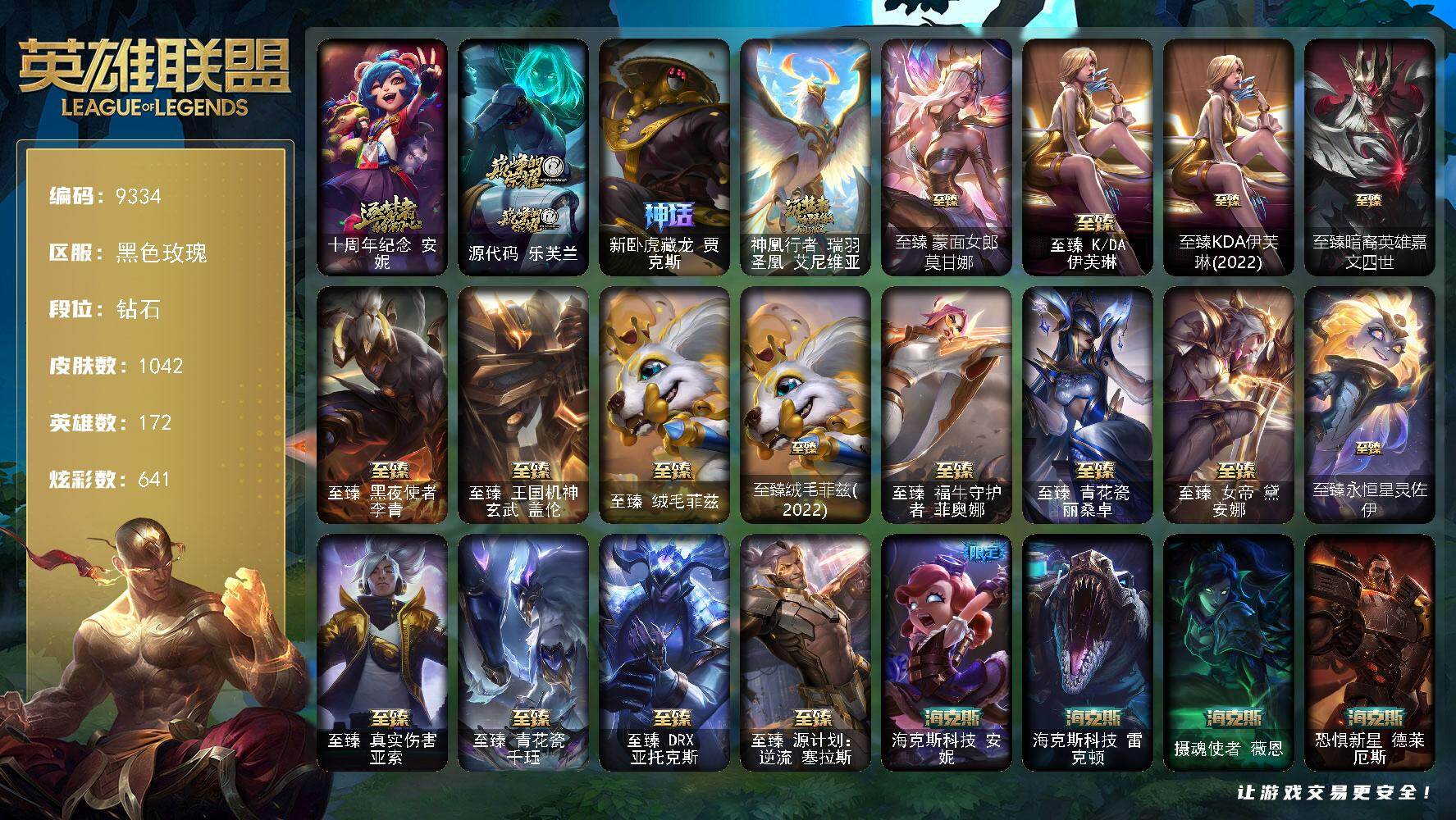【龙瞎 三个炫彩一个原皮 皇冠号】钻石段位-172英雄-1042皮肤-641炫彩-5