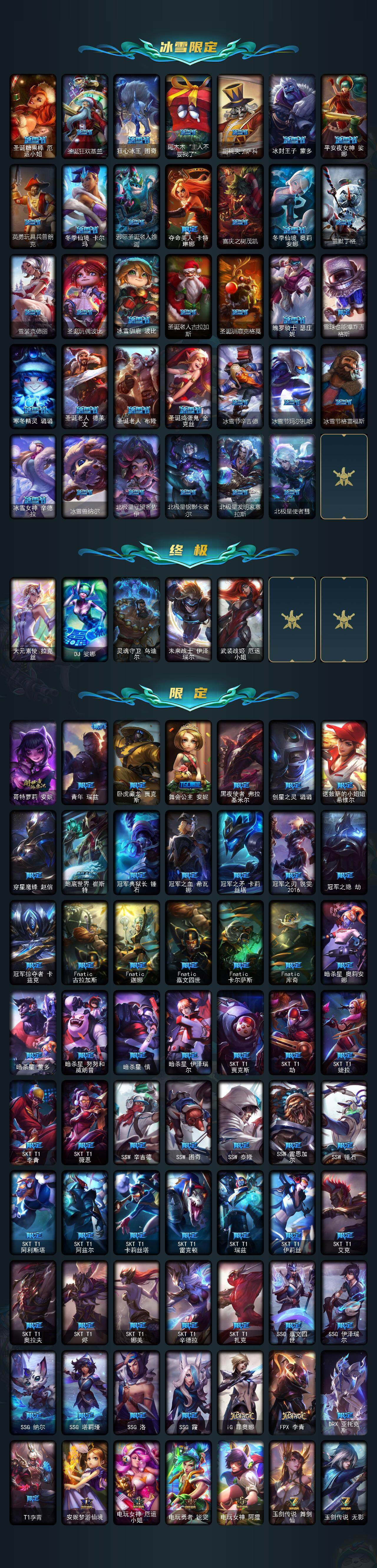 【至臻皮肤】:至臻蒙面女郎莫甘娜,至臻KDA伊芙琳,至臻KDA伊芙琳(2022),至臻暗裔英雄嘉文四世,至臻黑夜使者李青,至臻王国机神玄武盖伦,至臻绒毛菲兹,至臻绒毛菲兹(2