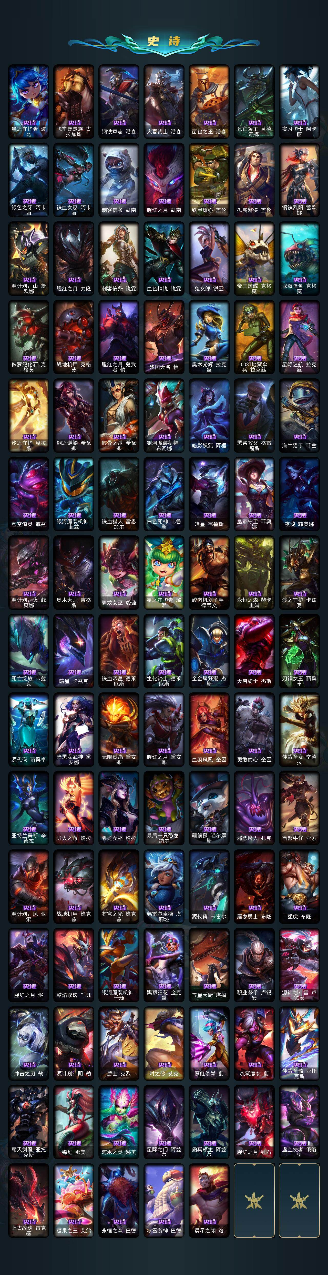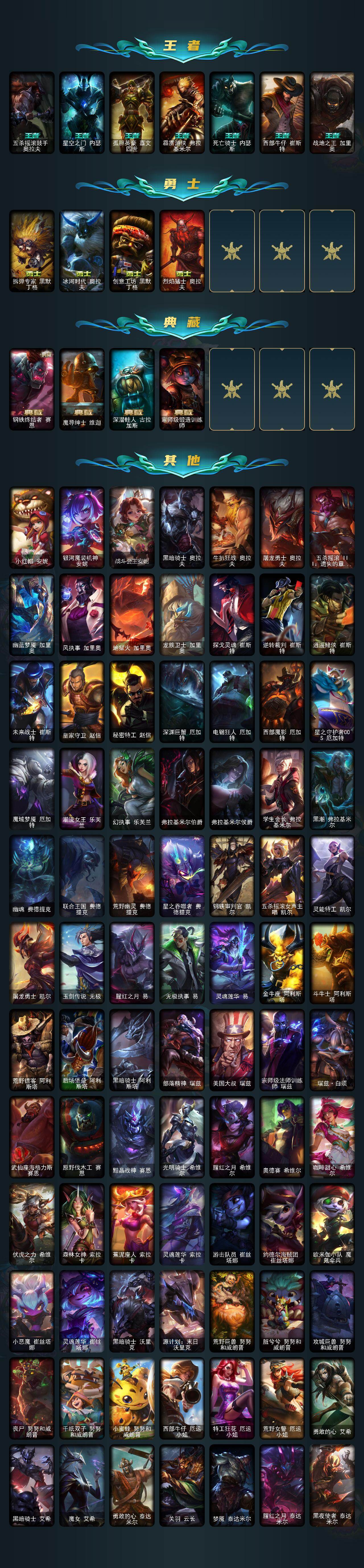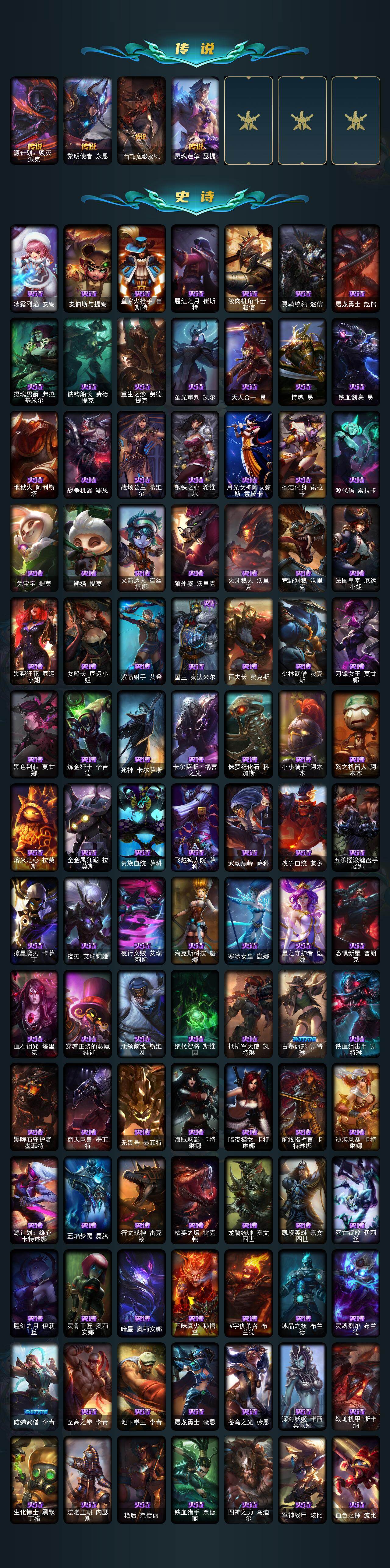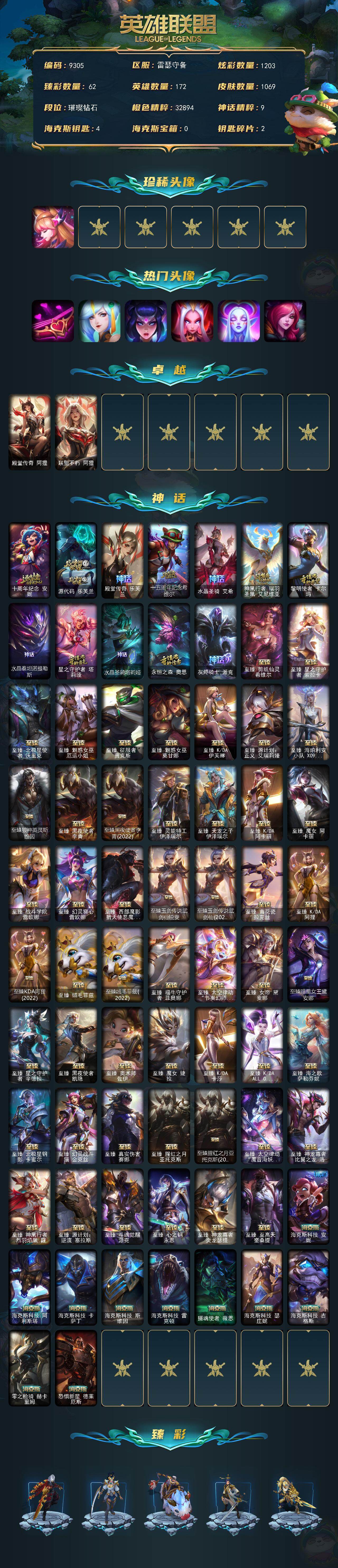 钻石段位-172英雄-1069皮肤-1203炫彩-0终极-72神话-171限定-109传说-201史诗