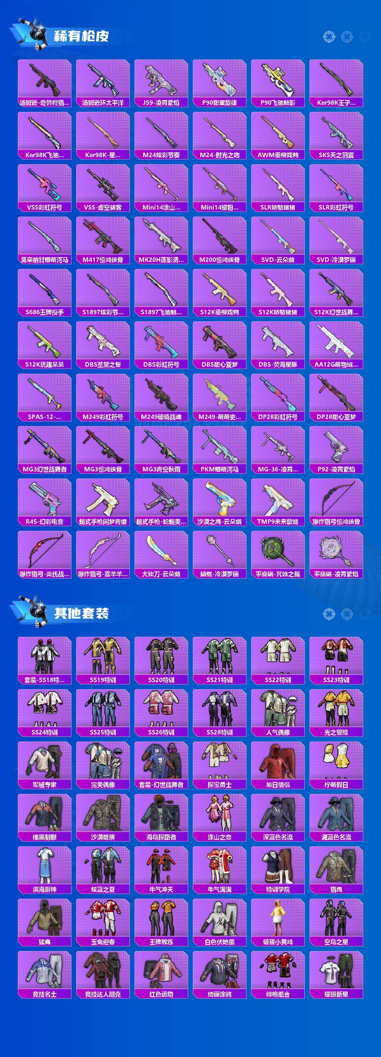 【粉色枪皮等级】:M416-心之恋语(七级),Mk14-福马献瑞(五级),DP-28-豹影疾电(五级),PKM-萌骑夺宝(五级)