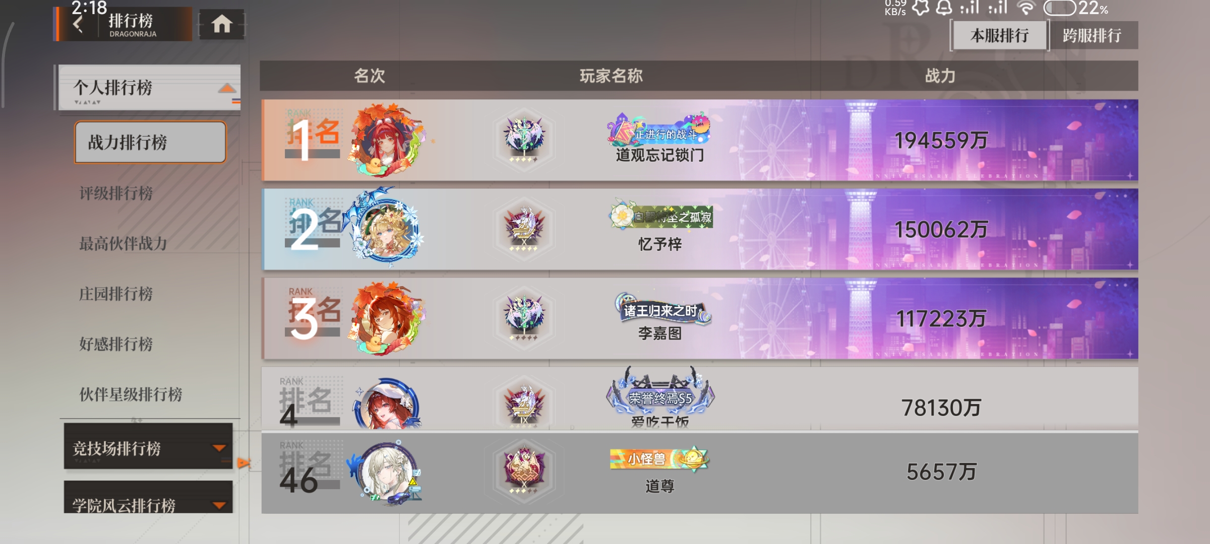平民号前50名巅峰战力
