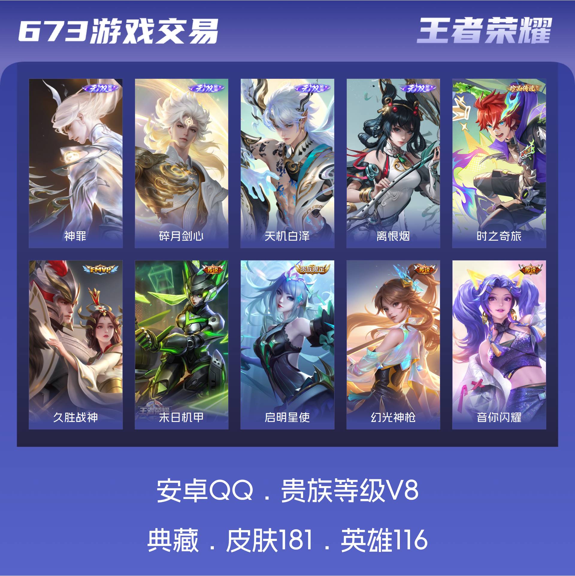 安卓QQ/荣耀王者/181皮肤/116英雄/0典藏/0珍品无双/4无双/1珍品传说/16传说/59史
