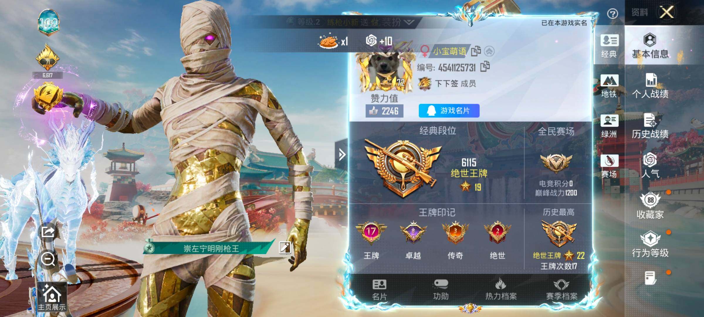 2红装3稀有2载具20粉装18特效枪11热门233套装336枪皮 17印记 历史绝世王牌22星