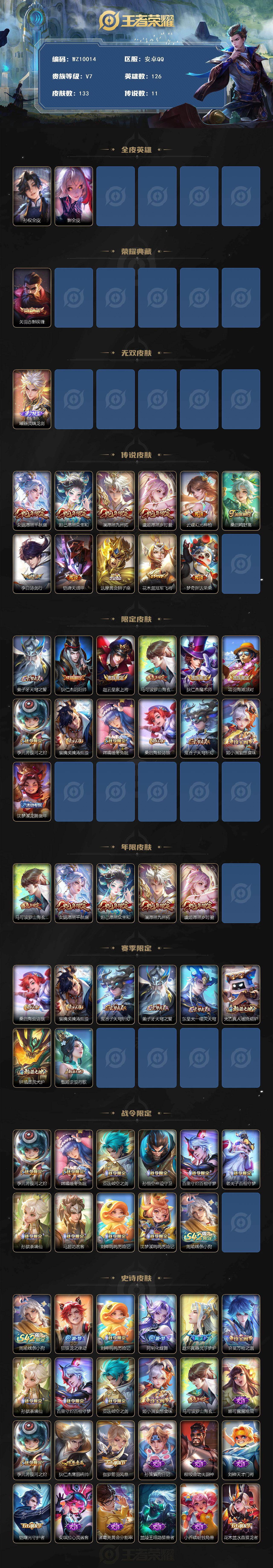 安卓Q-V7-至尊星耀III段位-126英雄-133皮肤-1典藏皮肤-1无双-11传说-34史诗