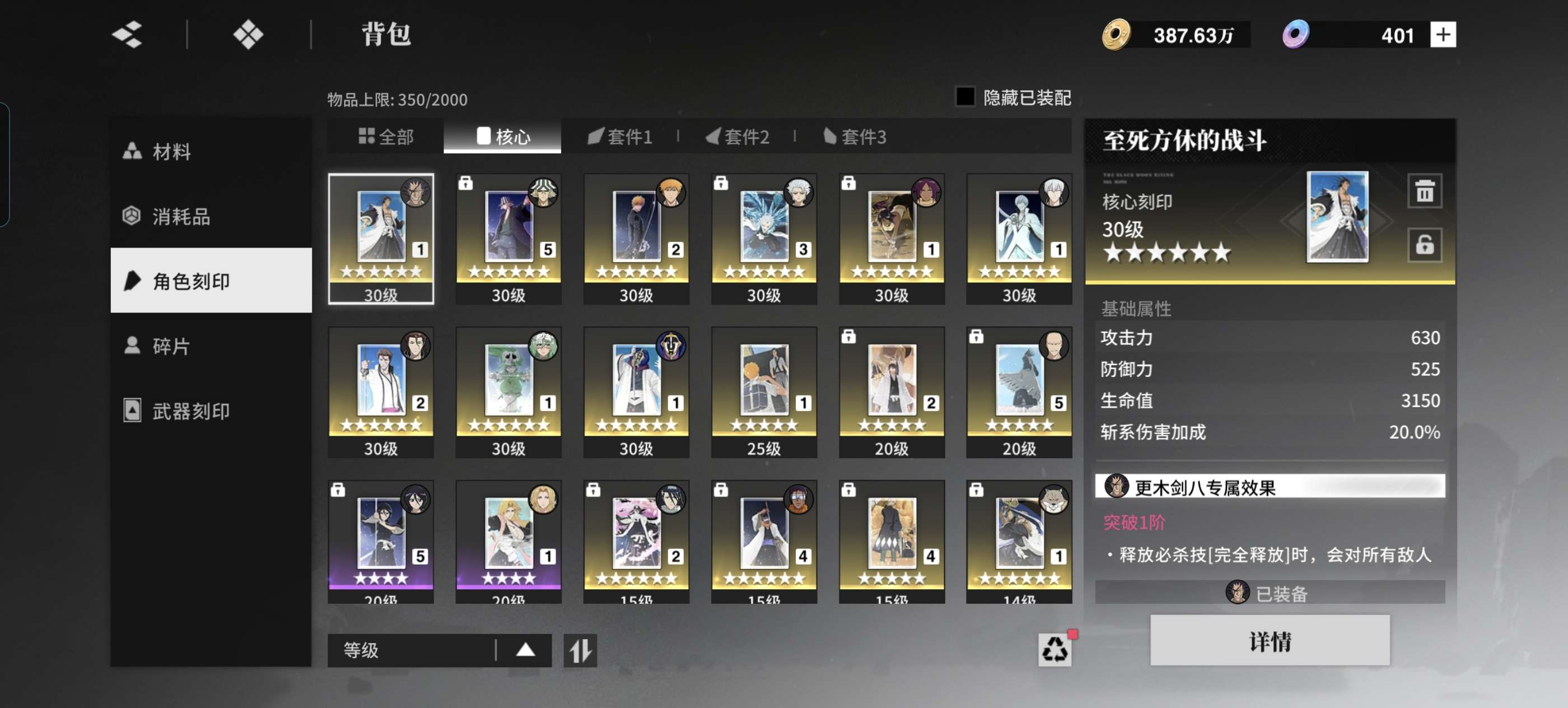 境界刀鸣taptap成品号,全角色全武器核心刻印蓝染4+1,银和一护1+1
