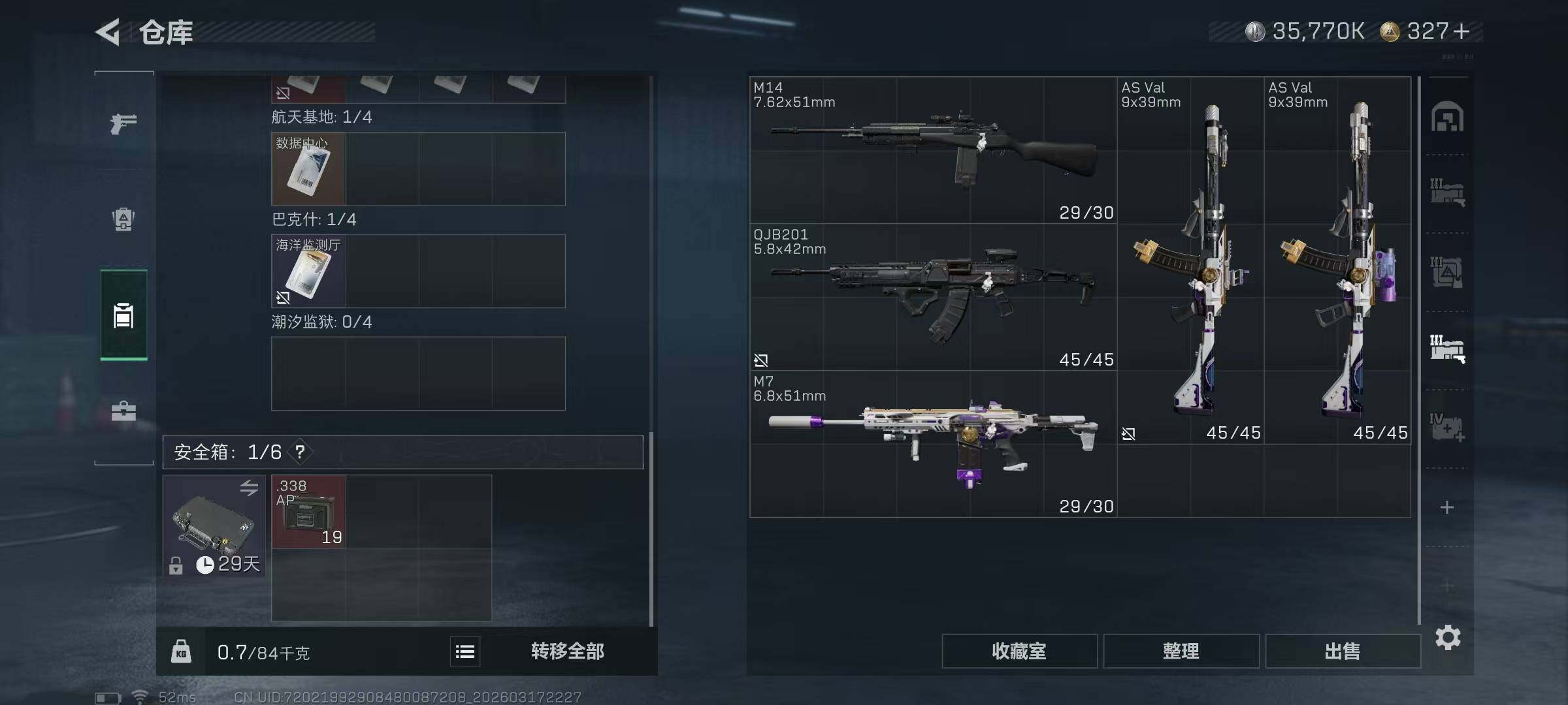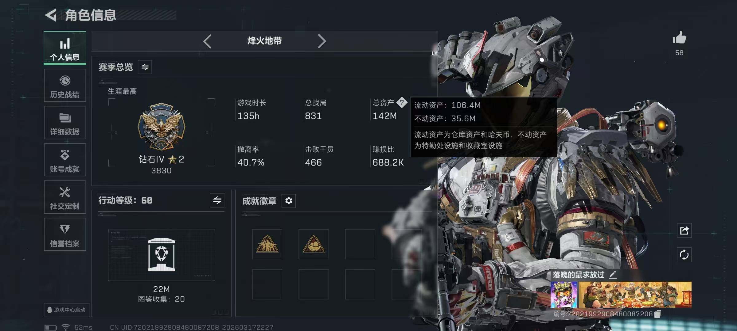 【SJ1447】【无封禁/满体影锋/蚀金凌霄带S8高级3X2】60级/总资142M/流资106M/327点卷/刀皮(影锋)红狼(蚀金玫瑰)威龙(凌霄戍卫)乌鲁鲁(荒原猎手)露娜(金牌射手)/8级仓库7级体力6级负重1级潜水/19发AW子弹