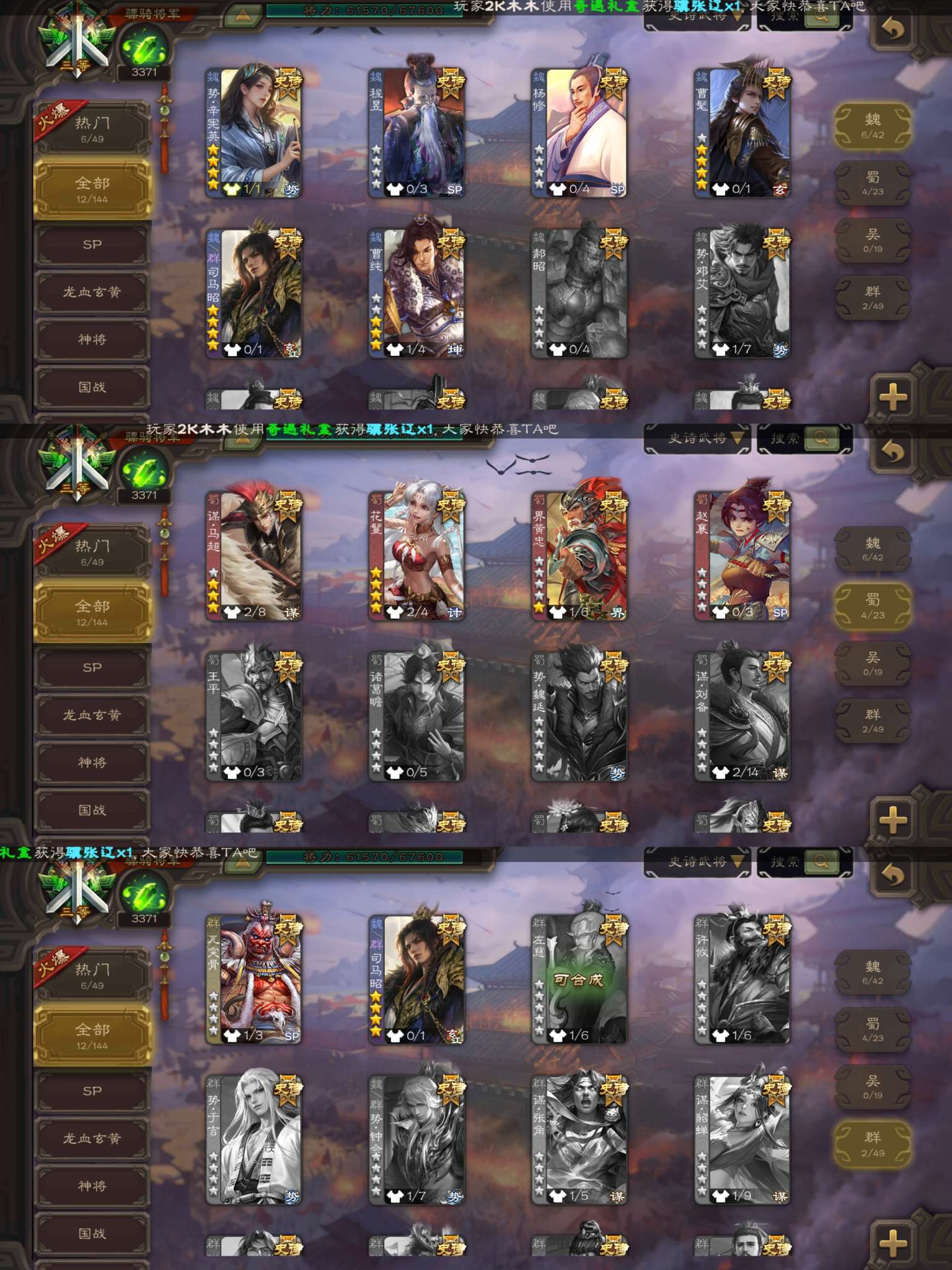 玉龙曹髦+动态势辛宪英+玉龙司马昭等12史诗骠骑将军!自带年卡,三卡材料充足,官服字母格式活绑