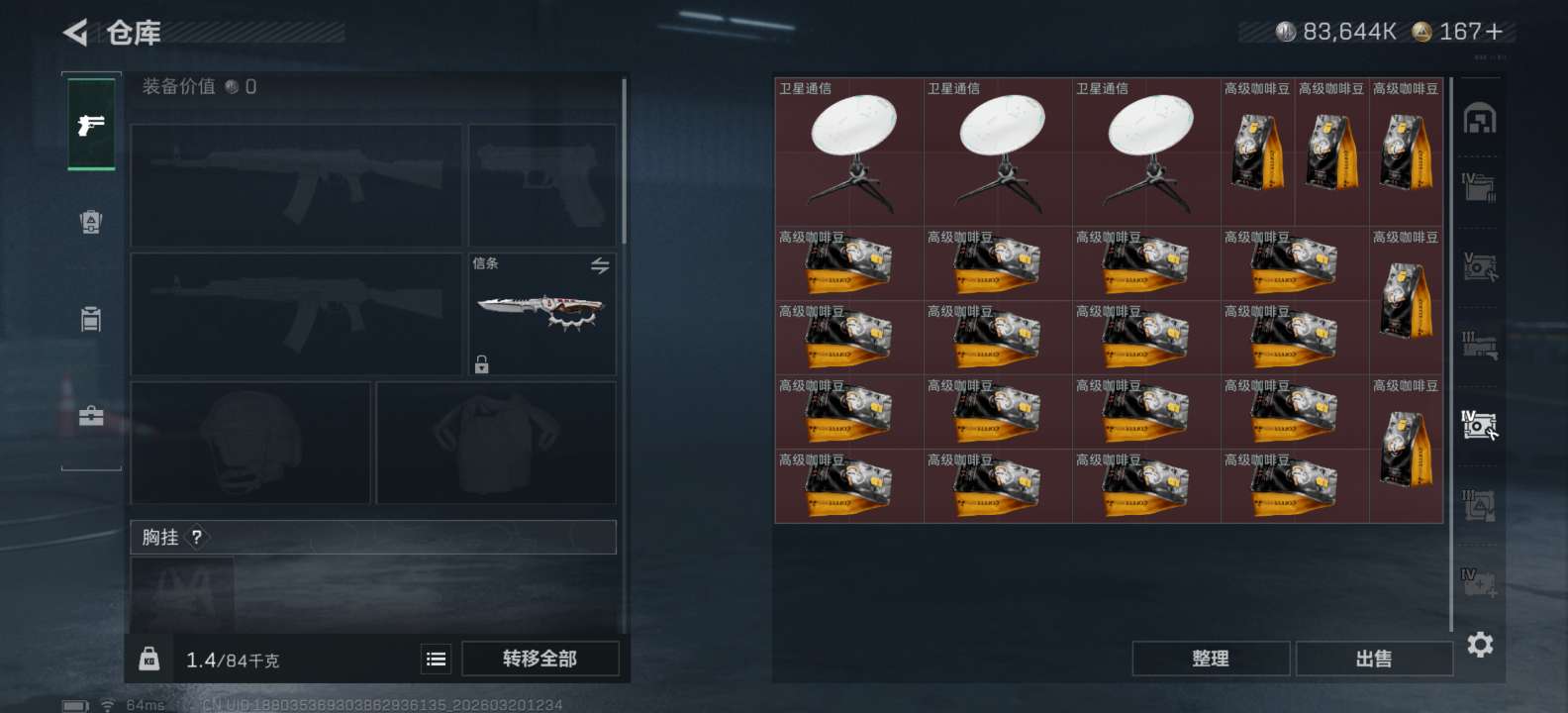 十几个六头六甲。刀皮信条,仓库8级,体力7级,负重6级,36发aw,1641发7.62.