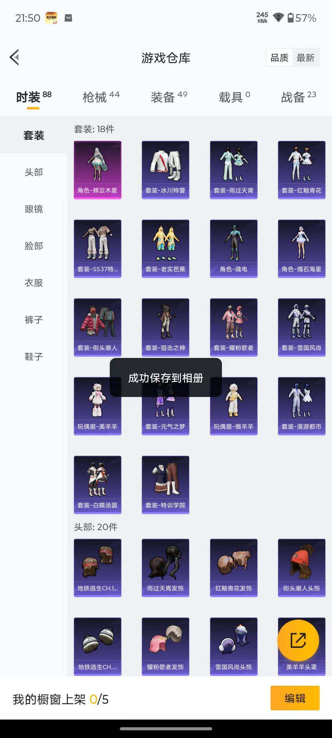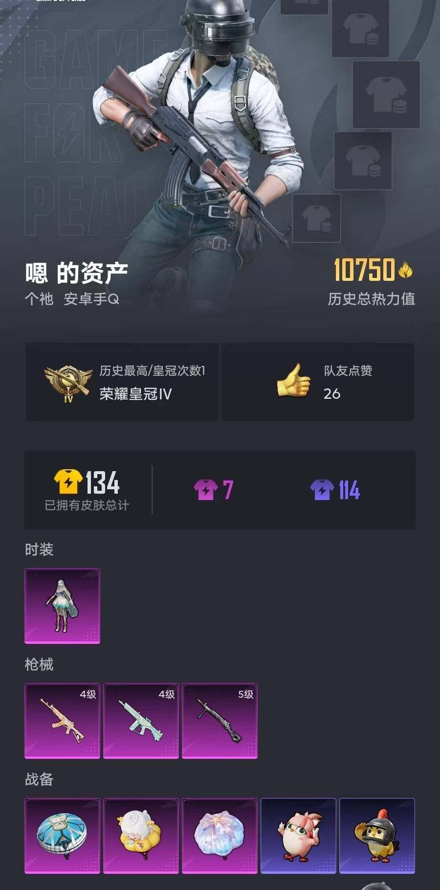 18套装/枪械3/装备49/战备23/热力值10750/四级ACE32-萌骑漫游/四级AA12-G-萌骑幻想/五级DP-28-豹影疾电/角色-辉云木星/ACE32-萌骑漫游/AA12-G-萌骑幻想/DP-28-豹影疾电/荧海星豚降落伞/喜羊羊与灰太狼降落伞/异瞳寒姬降落伞/套装-雪国风尚/角色-魂电/玩偶服-懒羊羊/玩偶服-美羊羊/套装-雨过天青/套装-红釉青花/AKM-破晓战魂/SCAR-L-