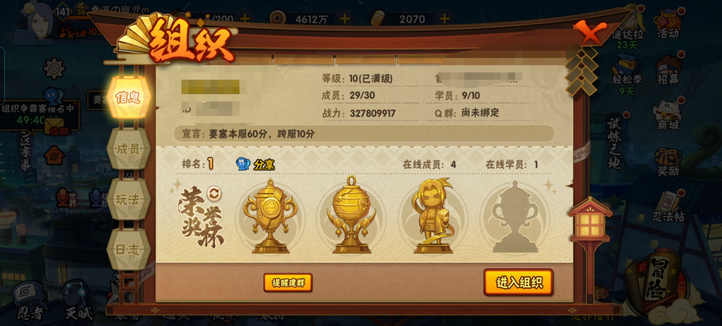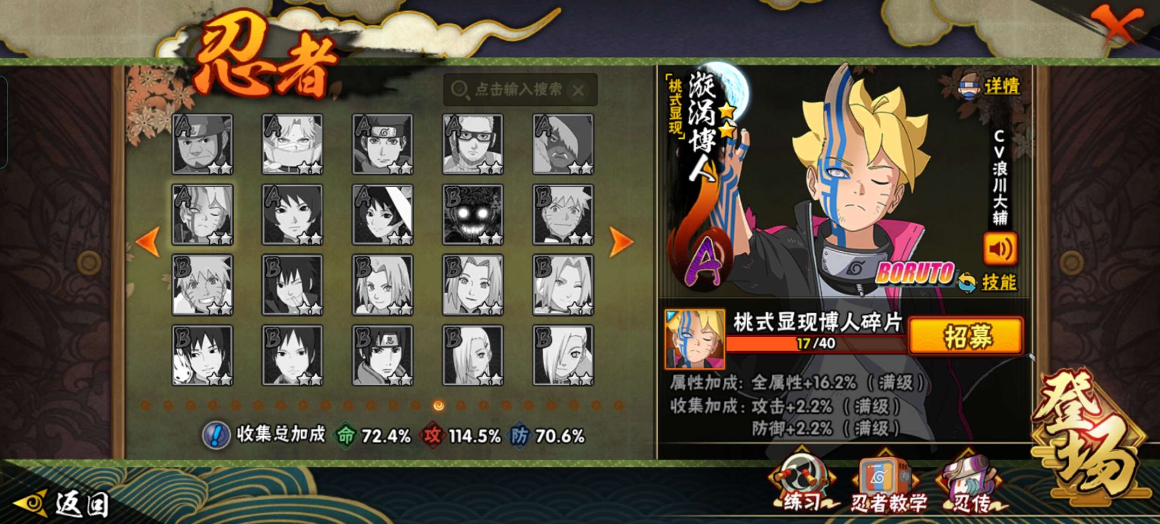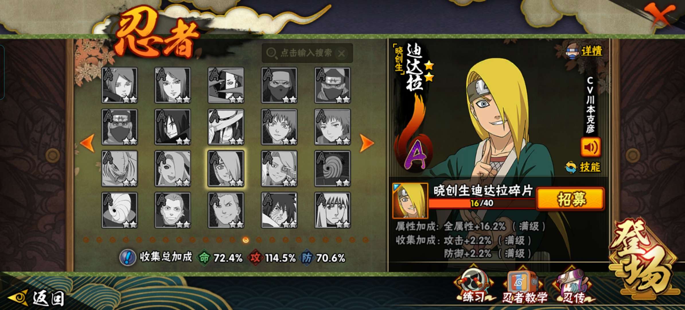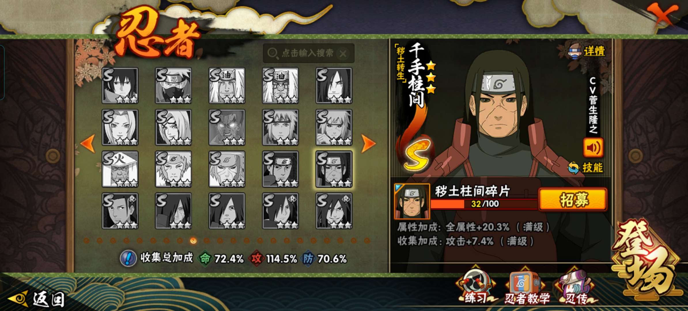 有很多强力忍者,排名前三十,战力和忍者都可以玩